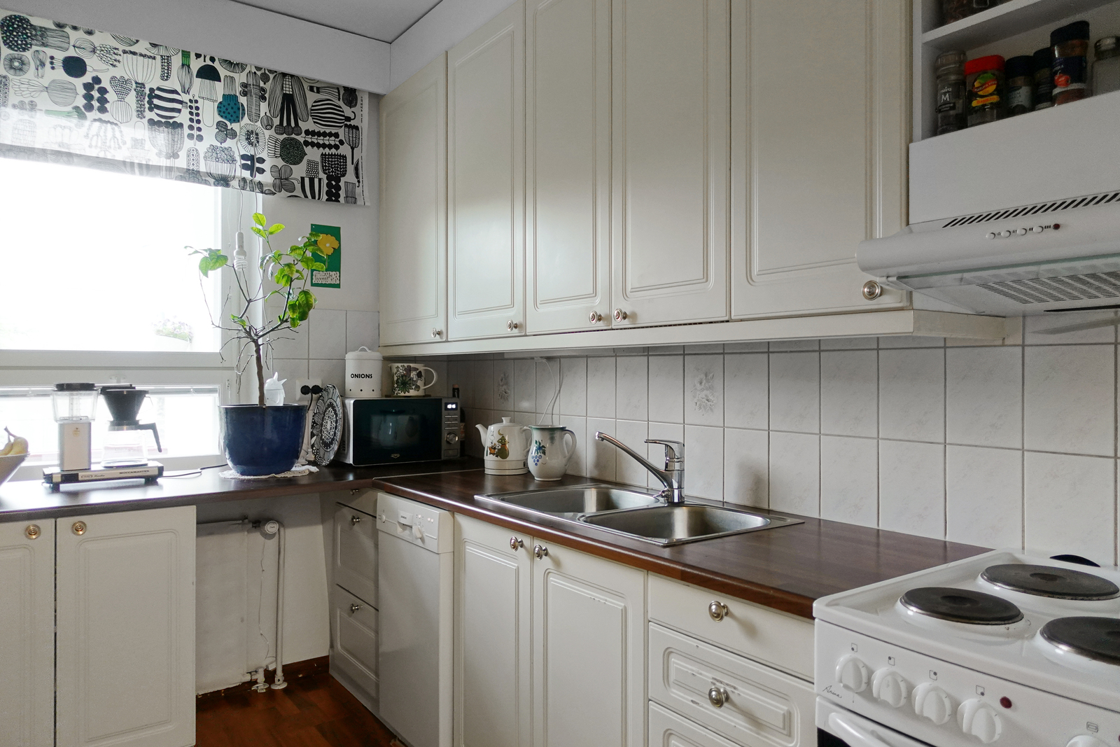 Kaapistojen ovet, tasot, kodinkoneet, osa alakaapeista kokonaan uusittu 2007. |