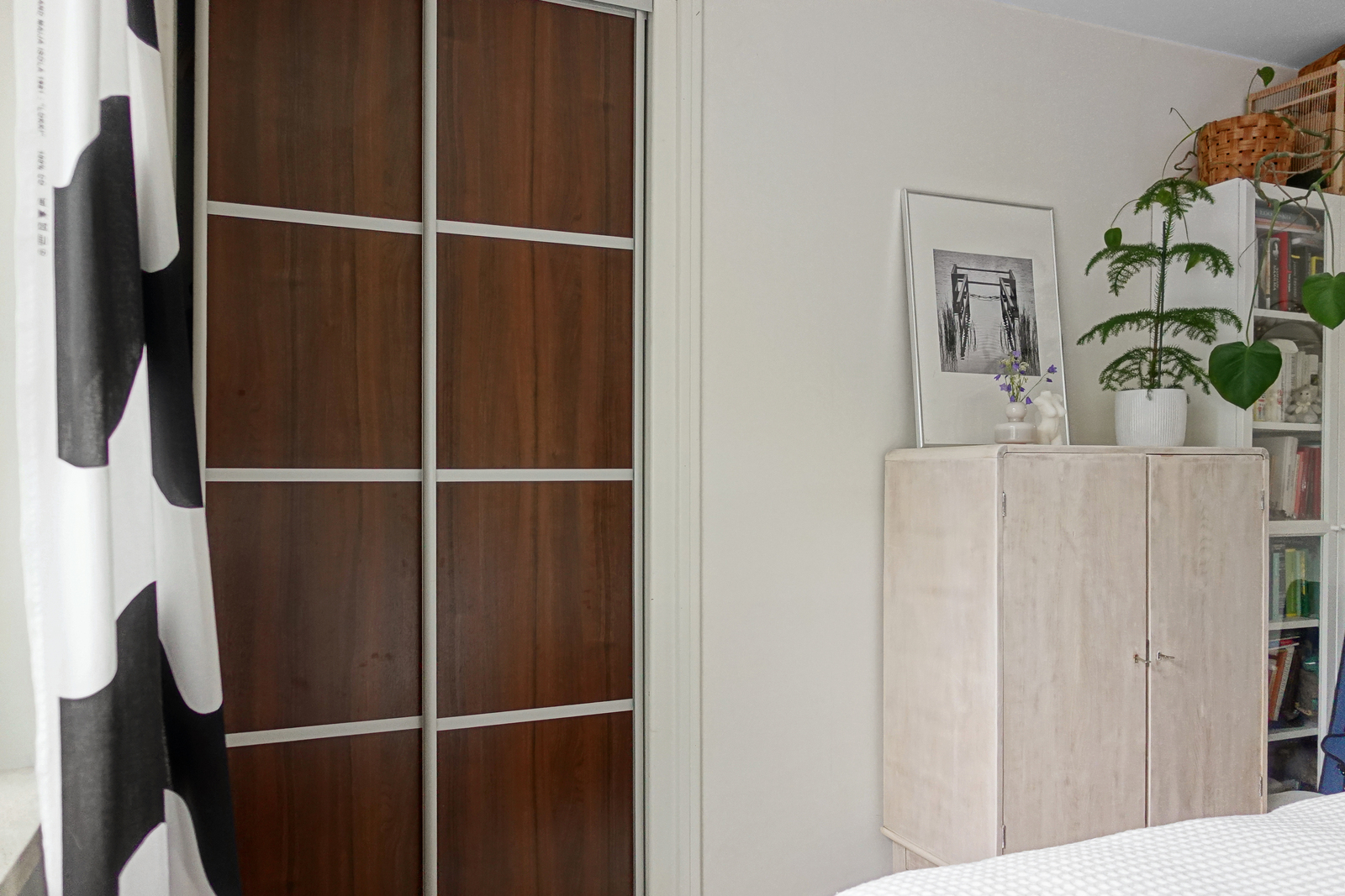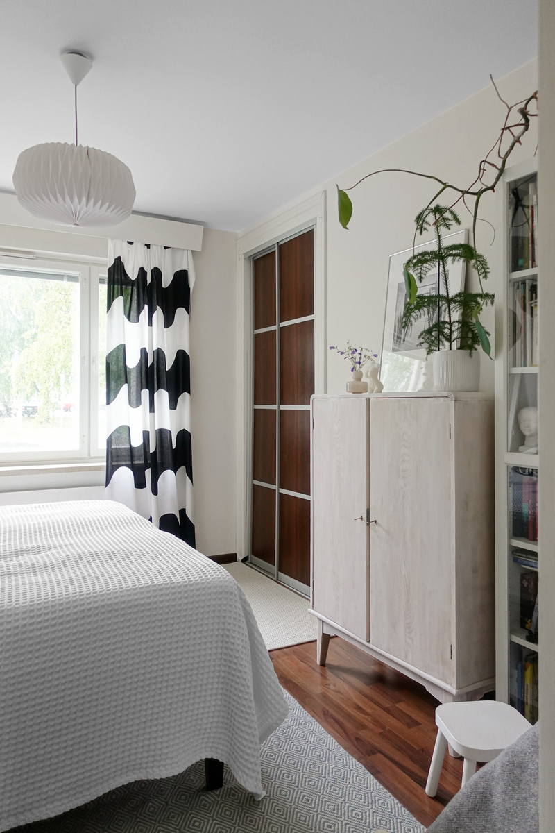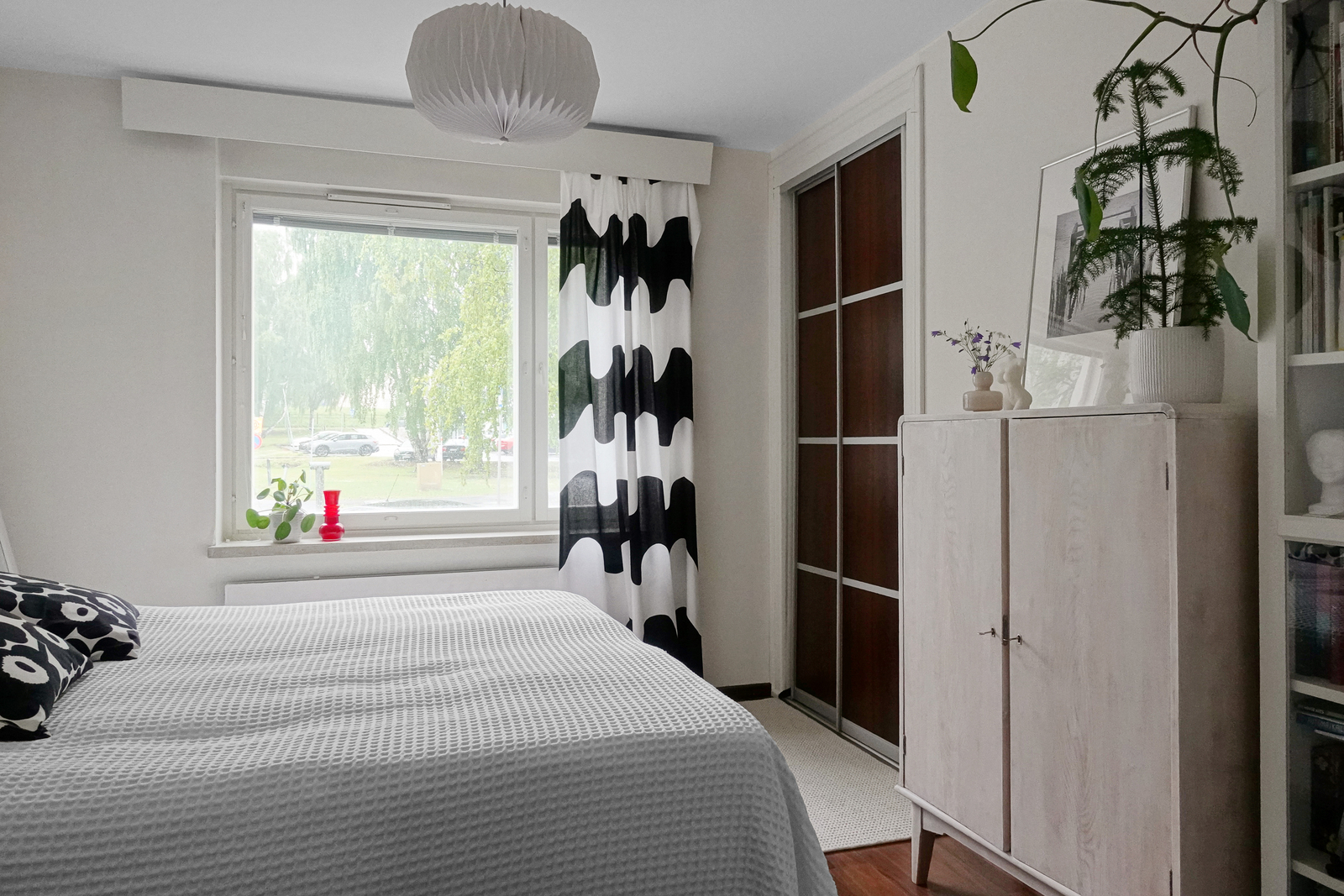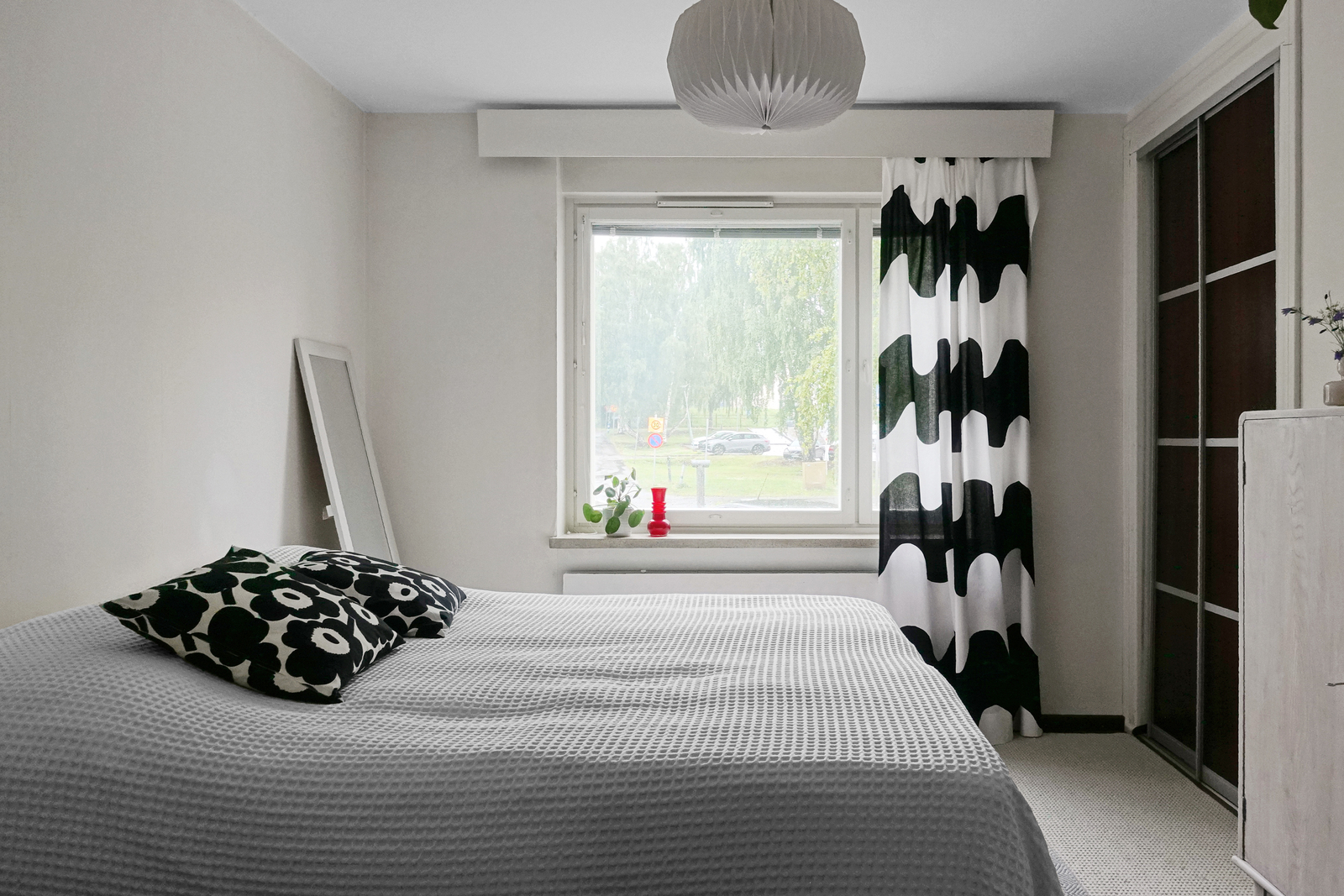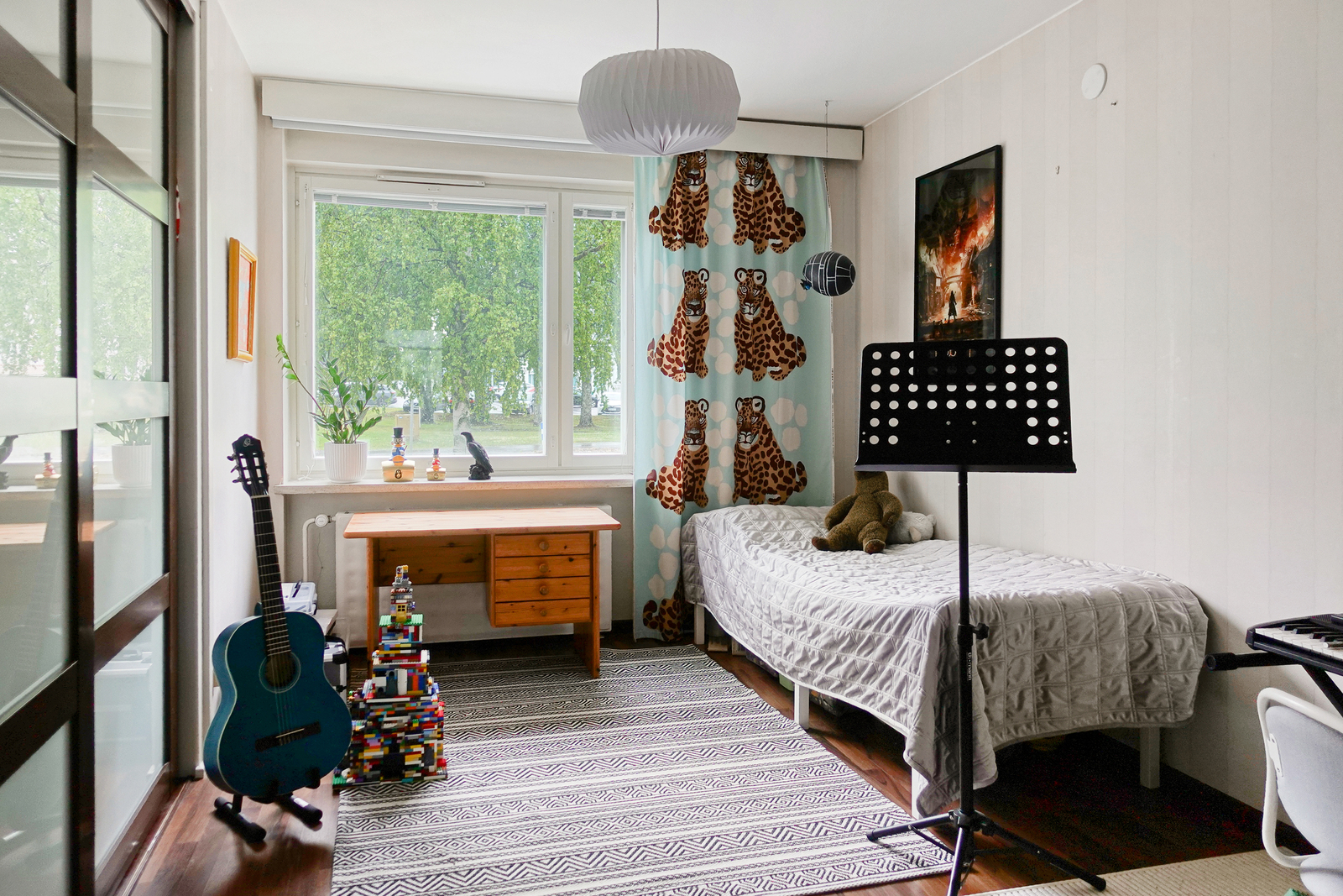 Makuuhuoneissa laminaattilattia, tapettiseinät. |