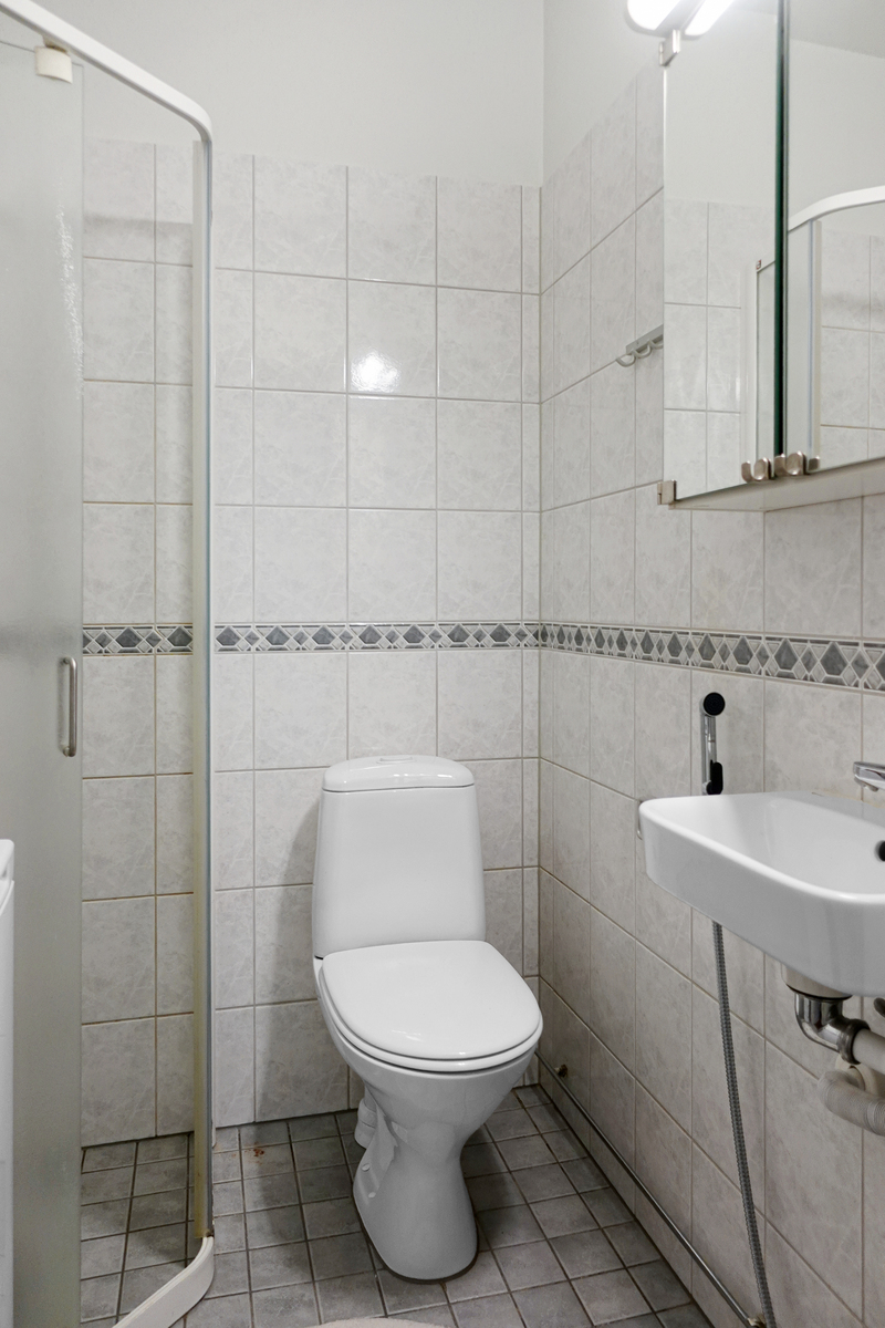 Remontoitu 2007. Laatoitettu lattia, kaakeliseinät. Pesukoneliitäntä, lattialämmitys. |