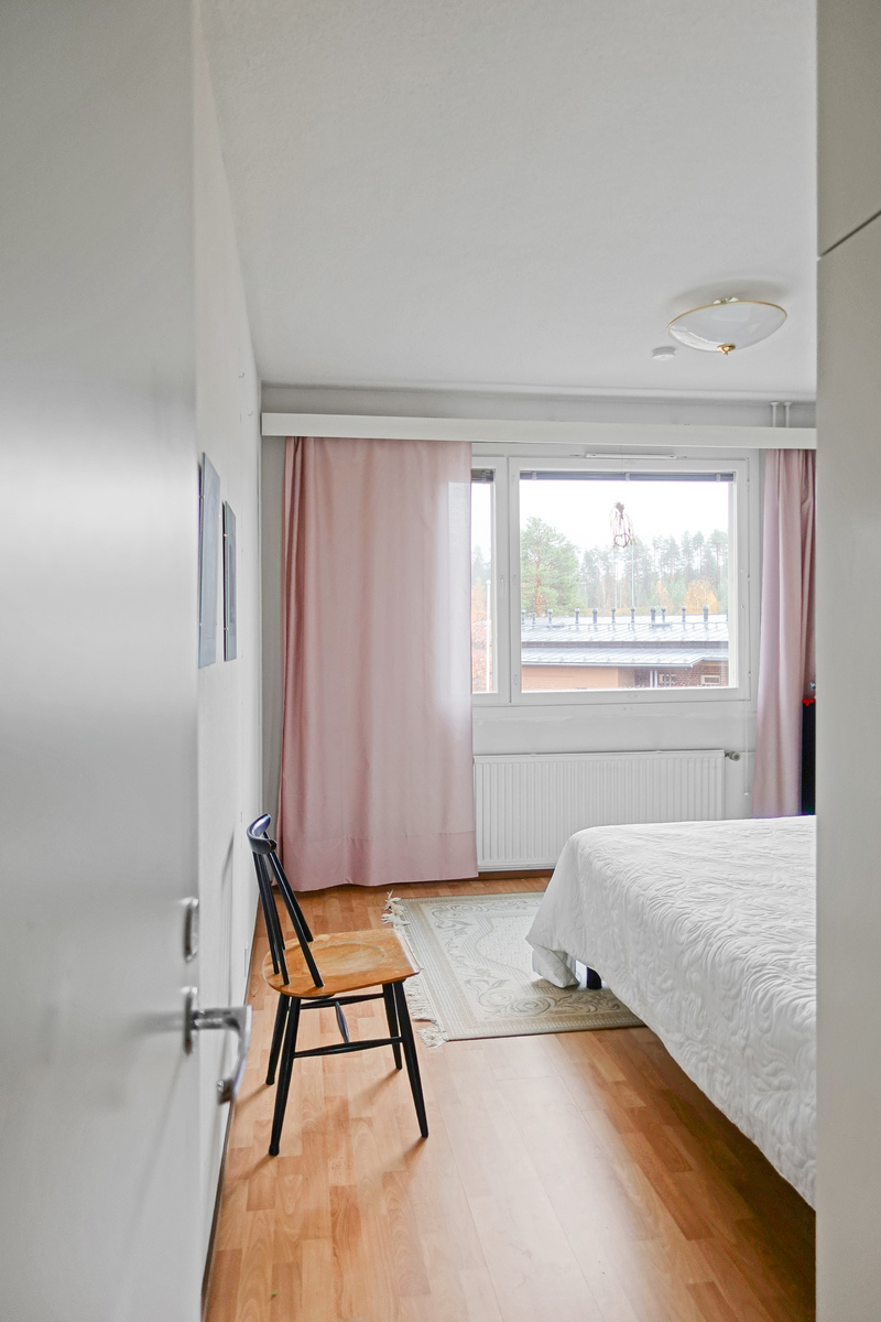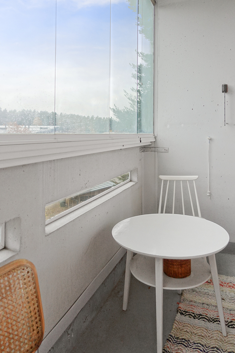 Tässä läpitalon huoneistossa on selkeä ja toimiva pohjaratkaisu: kaksi makuuhuonetta, tilava olohuone, erillinen keittiö, oma sauna sekä kylpyhuone ja eteistila. Asunnon kruunaa lasitettu parveke, jolta avautuu rauhalliset näkymät.