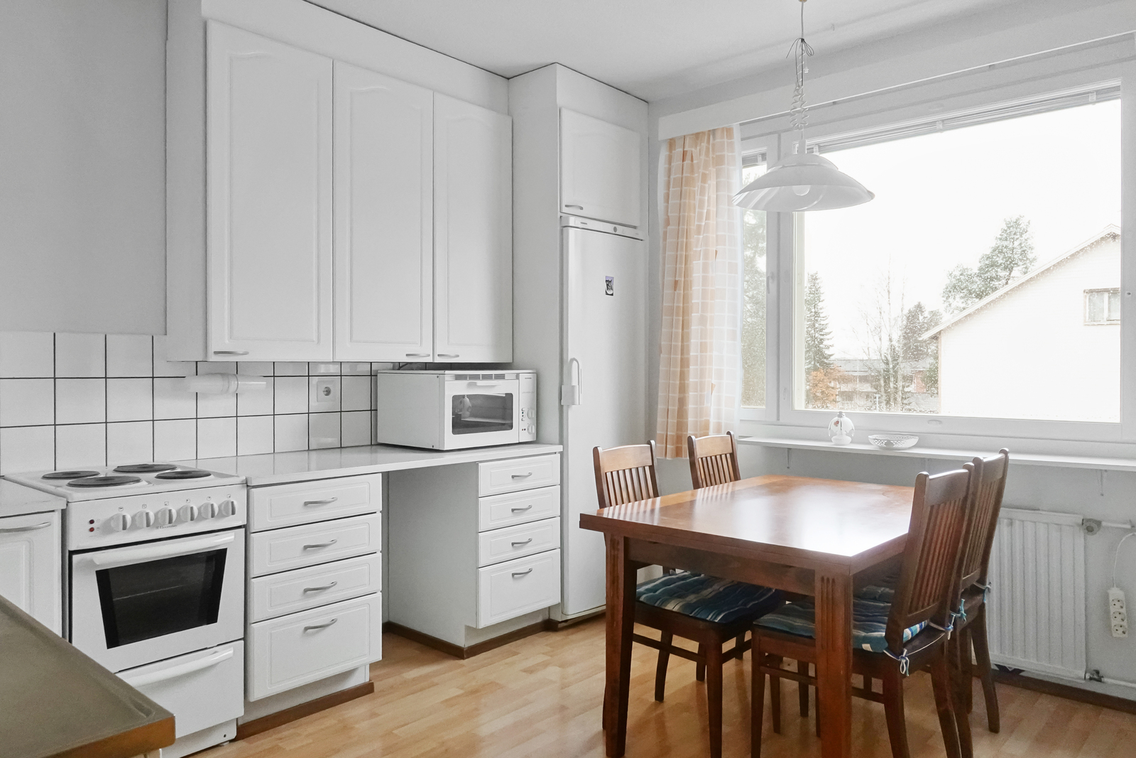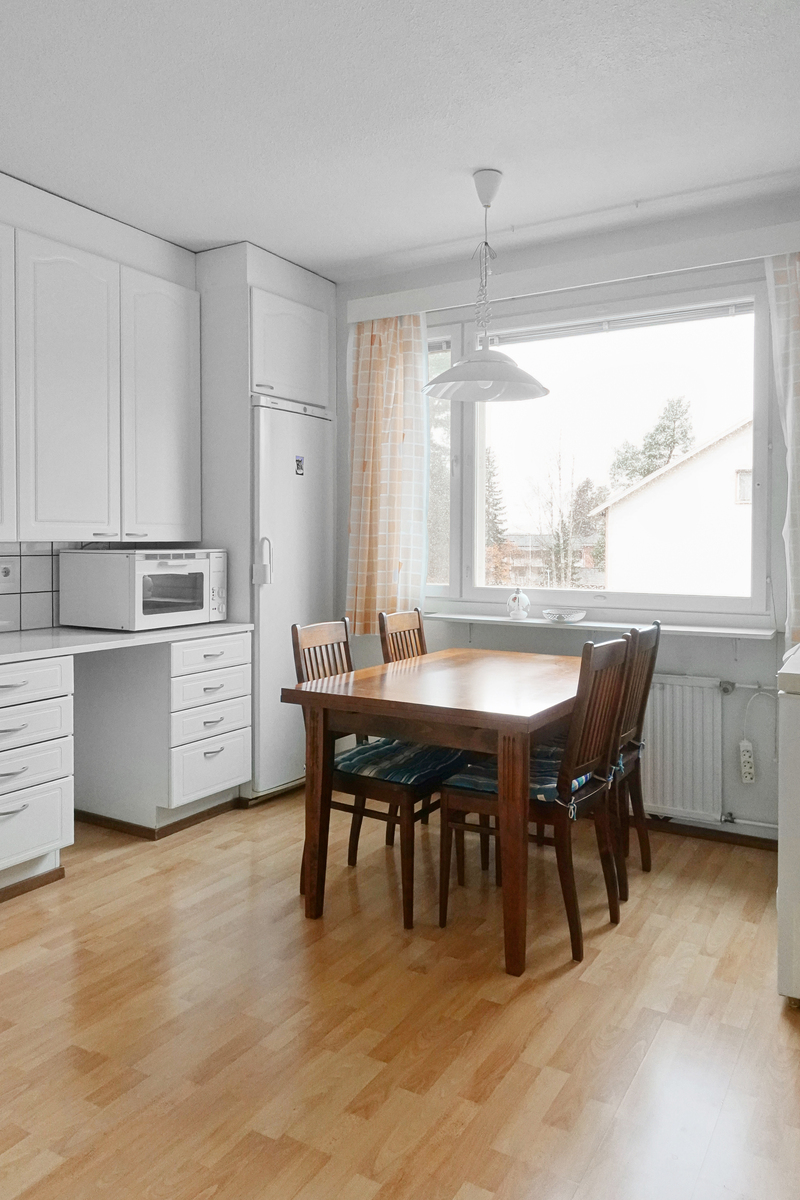 Huoneiston yleisilme on siisti ja kodikas. Vaikka pinnat, keittiö ja kylpyhuone eivät ole täysin uusia, ovat ne hyvässä kunnossa ja tarjoavat mahdollisuuden muokata asuntoa omaan makuun sopivaksi.