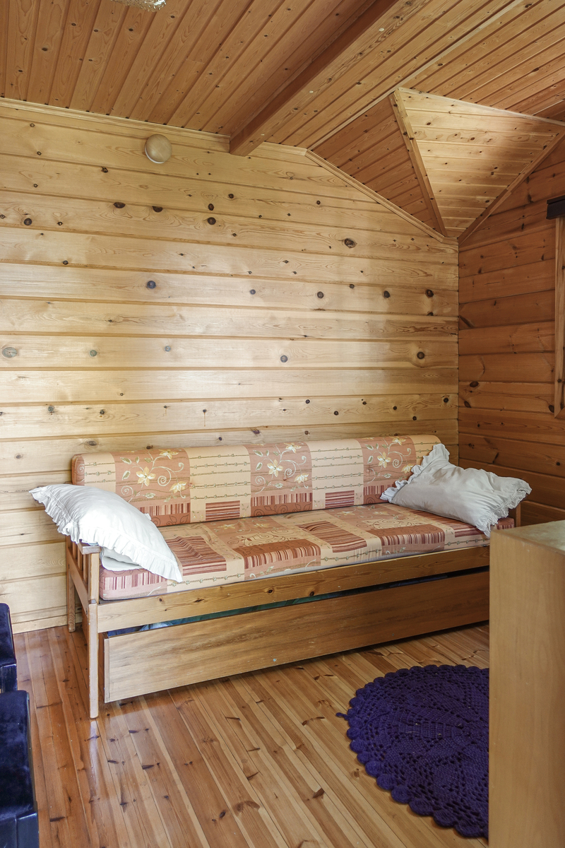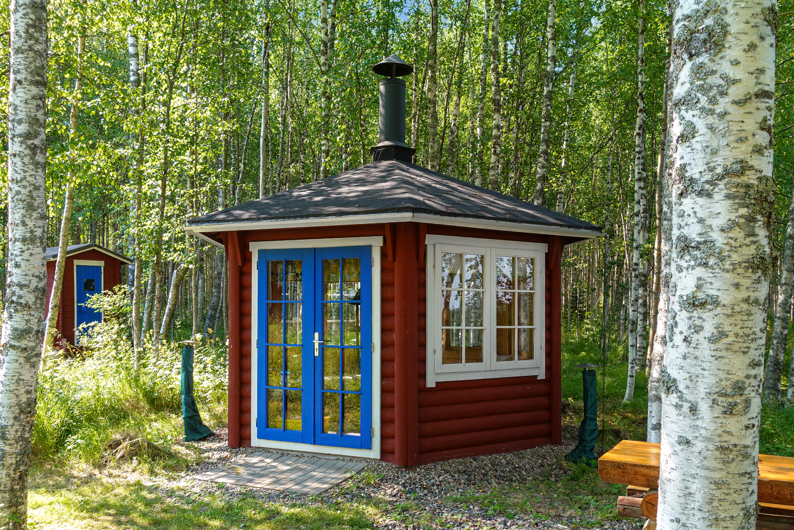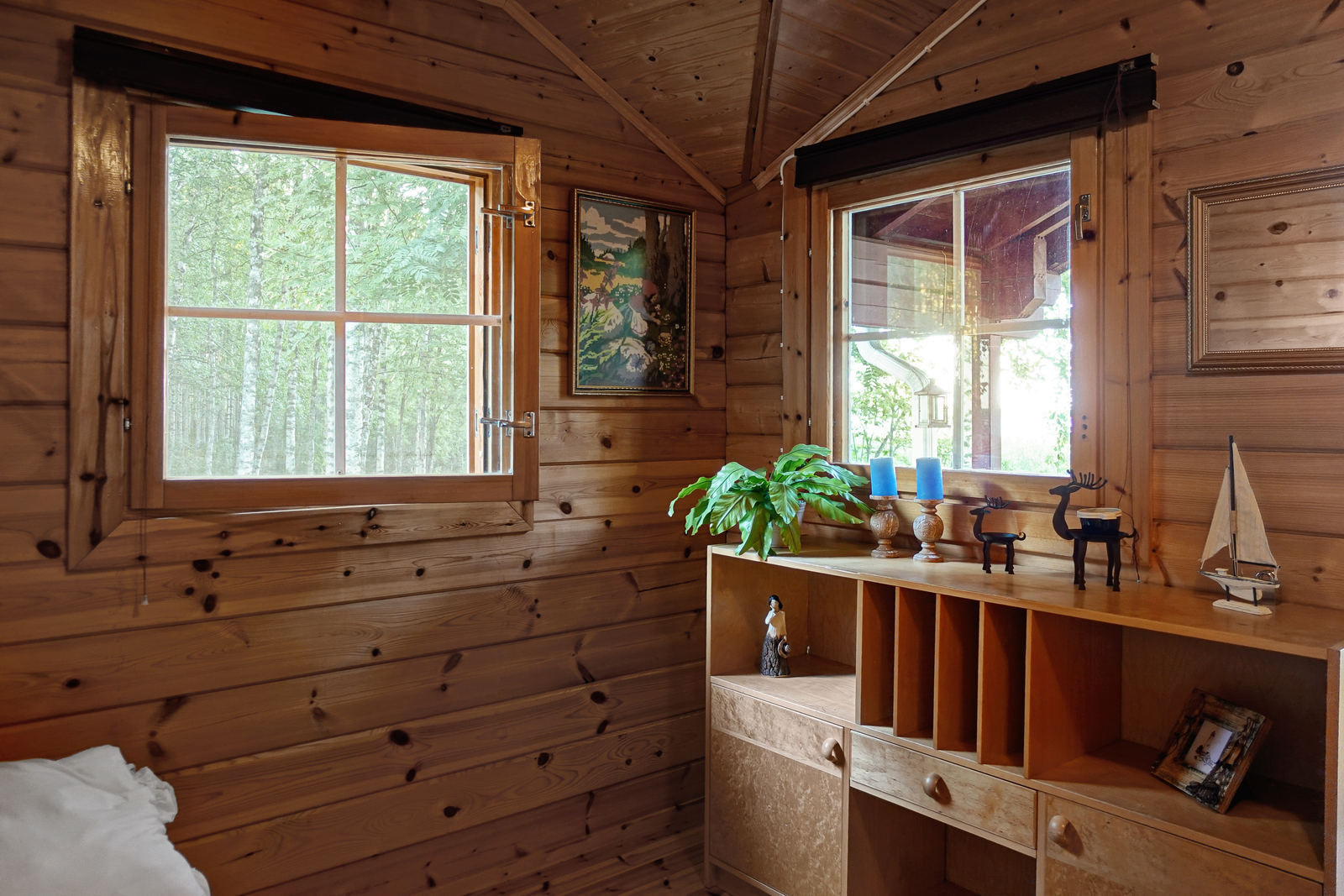 Lisätietoja | Pukuhuone: lautalattia, hirsiseinät, paneelikatto. Eteinen: hirsiseinät, maalattu paneelikatto, lautalattia, naulakko. |