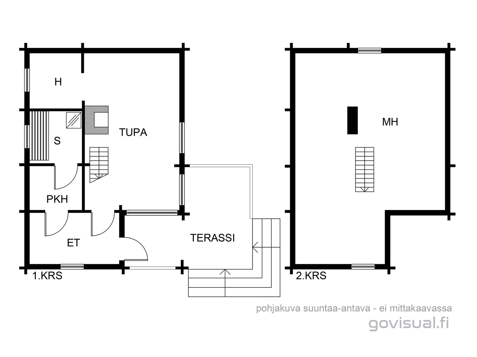 55 m2 | 134 000 € | Tupa+keittökomero+yläkerrassa makuutilat+sauna+ph+eteinen+kuisti+terassi