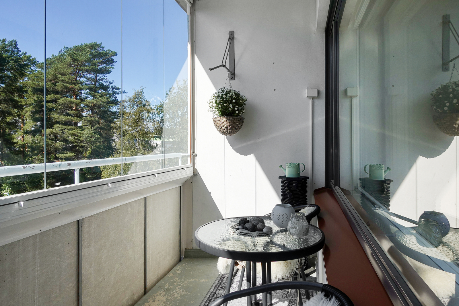 Lasitettu parveke länteen päin |
