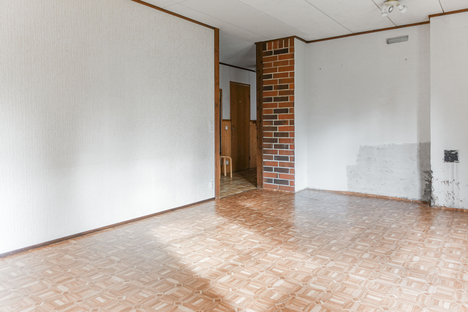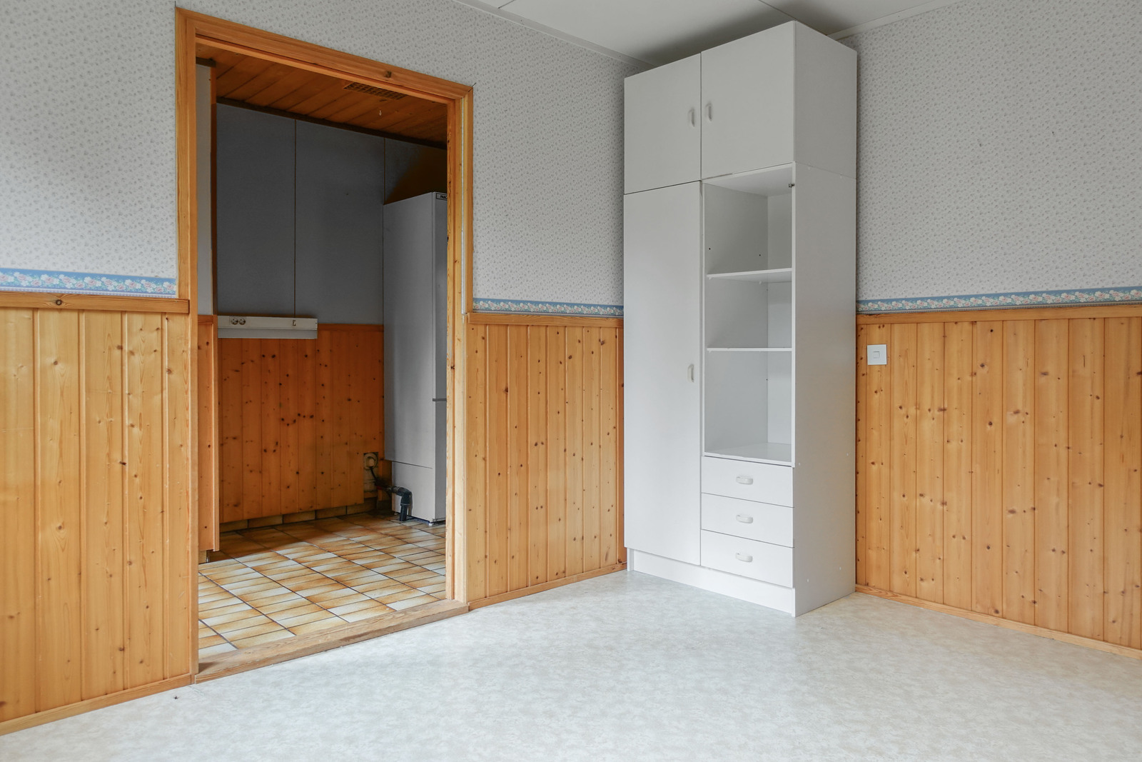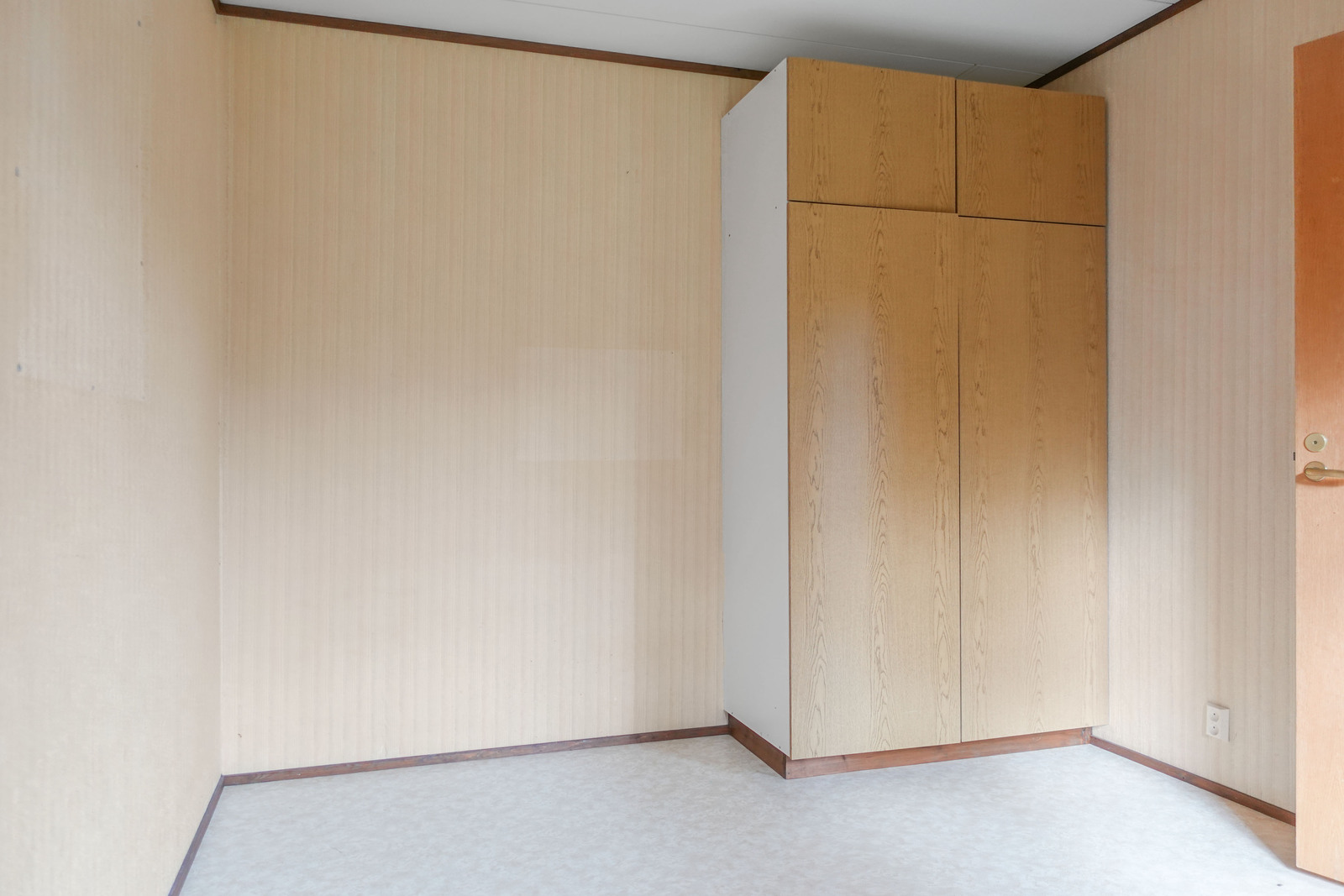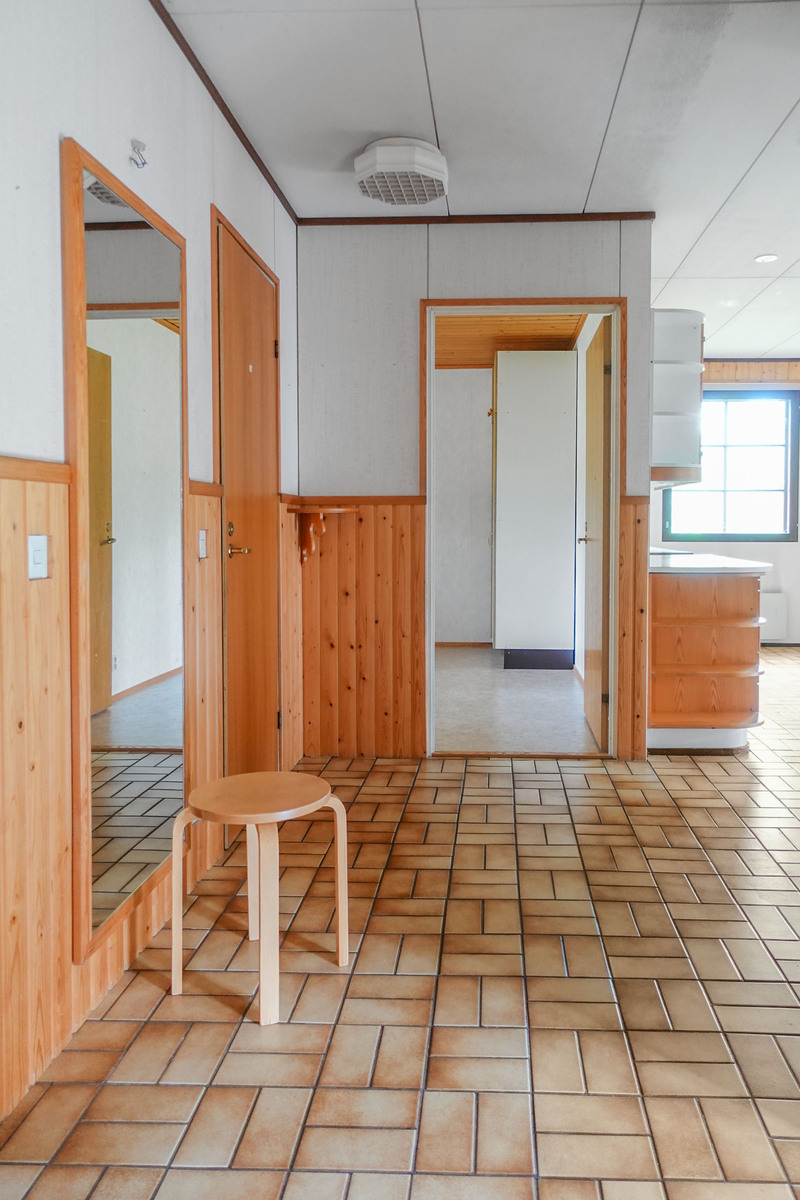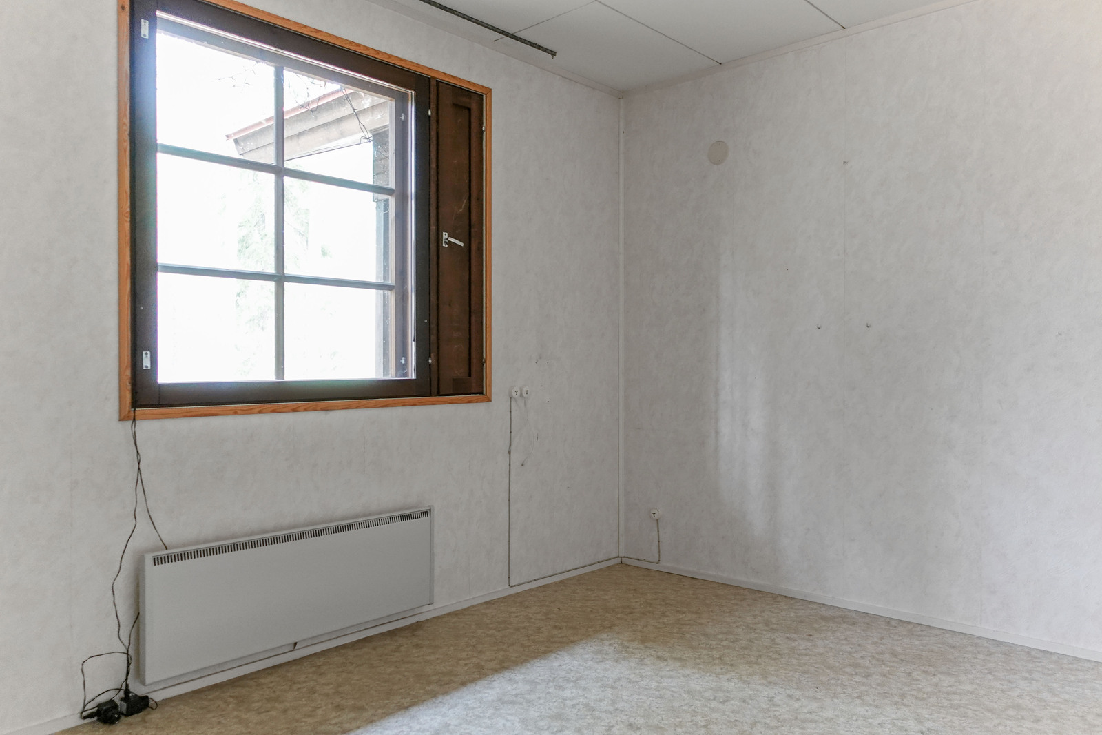 Huoneet 4-5: Muovimatto, puolipaneloidut/tapetoidut seinät, levykatto kahdessa huoneessa. |