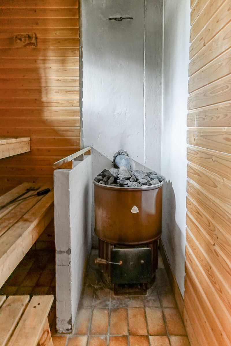 Pesukoneliitäntä ja lämminvesivaraaja sijaitsevat pukuhuone-/eteistilassa. |