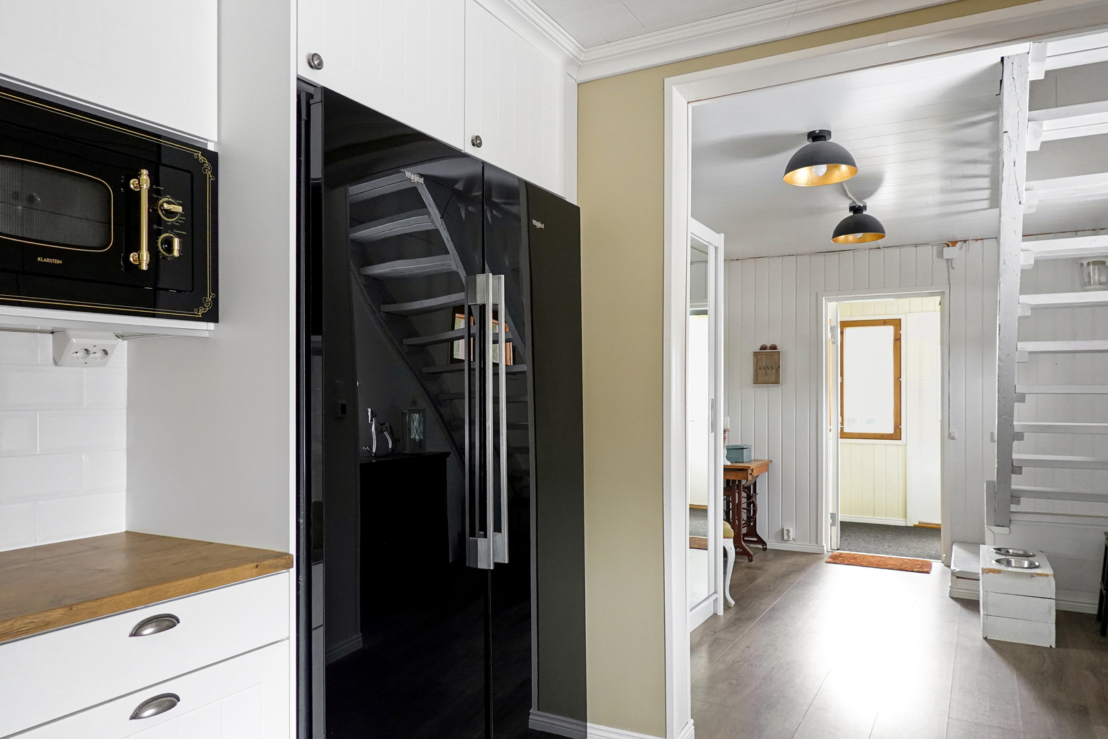 | Keittiön kuvaus | Uuni, induktioliesi, aktiivihiilisuodatin, jääkaappi, pakastin, integroitu mikroaaltouuni |