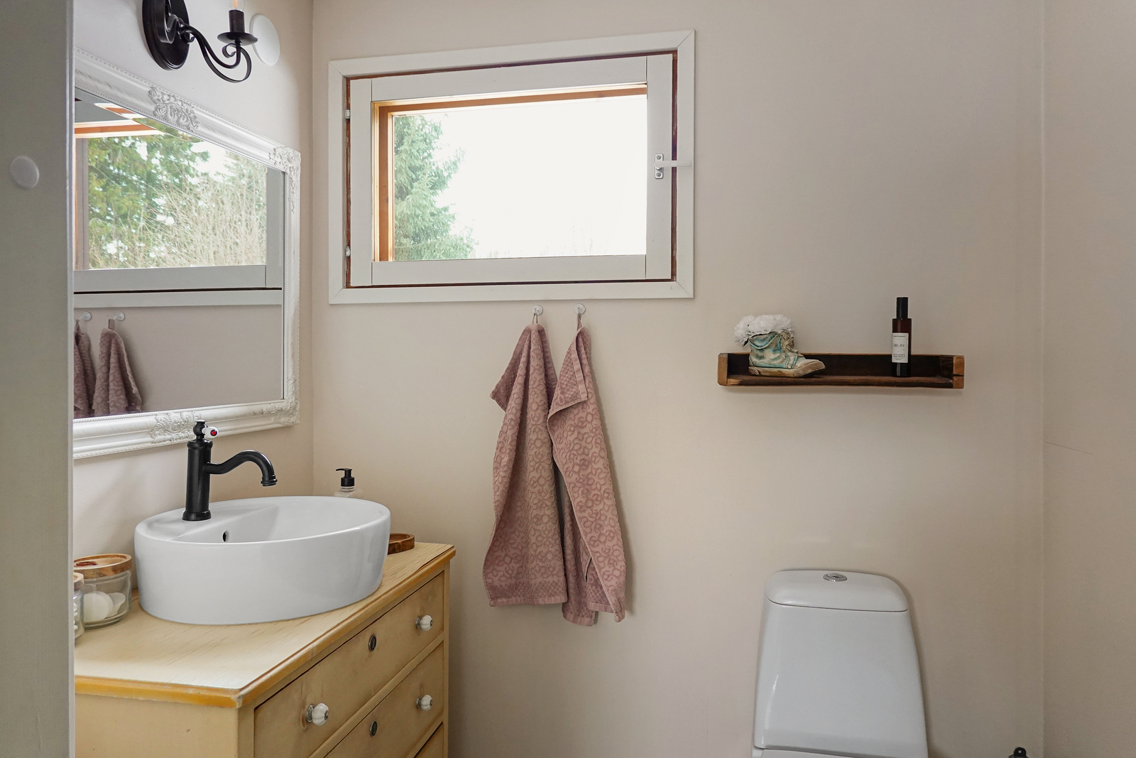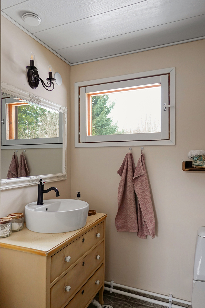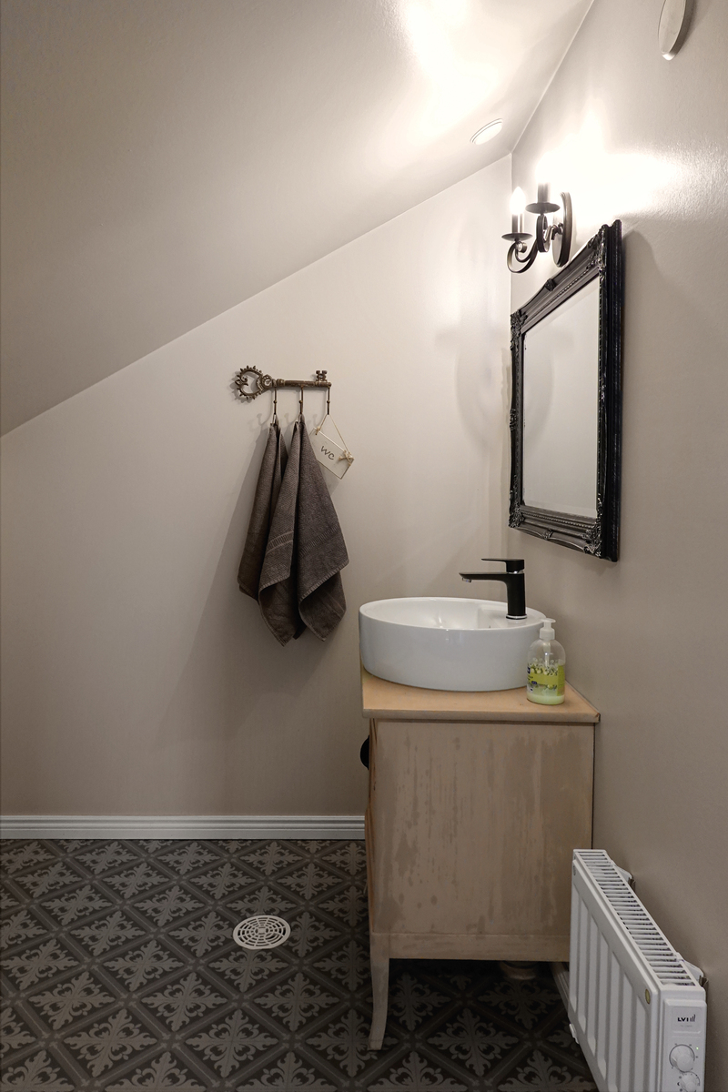 | WC | Lisäsiiven wc: Laatoitettu lattia, maalatut seinät, sähköinen lattialämmitys. Yläkerran wc: muovimattolattia, maalatut seinät ja katto. |