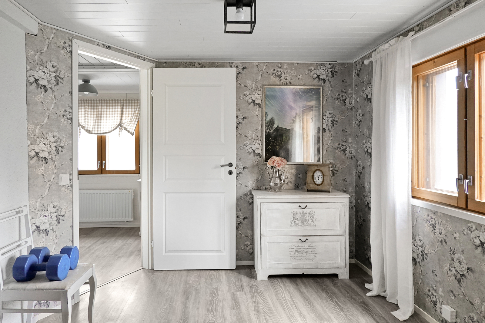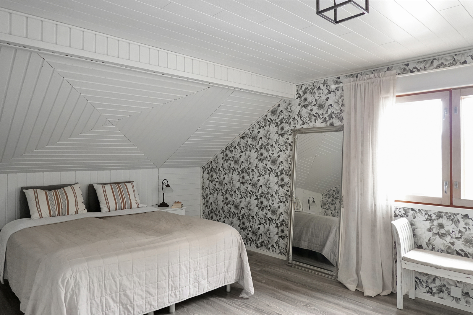 | Makuuhuoneiden kuvaus | Laminaattilattiat, seinäpinnat osaksi tapettia, osaksi paneelia, paneelikatto. |