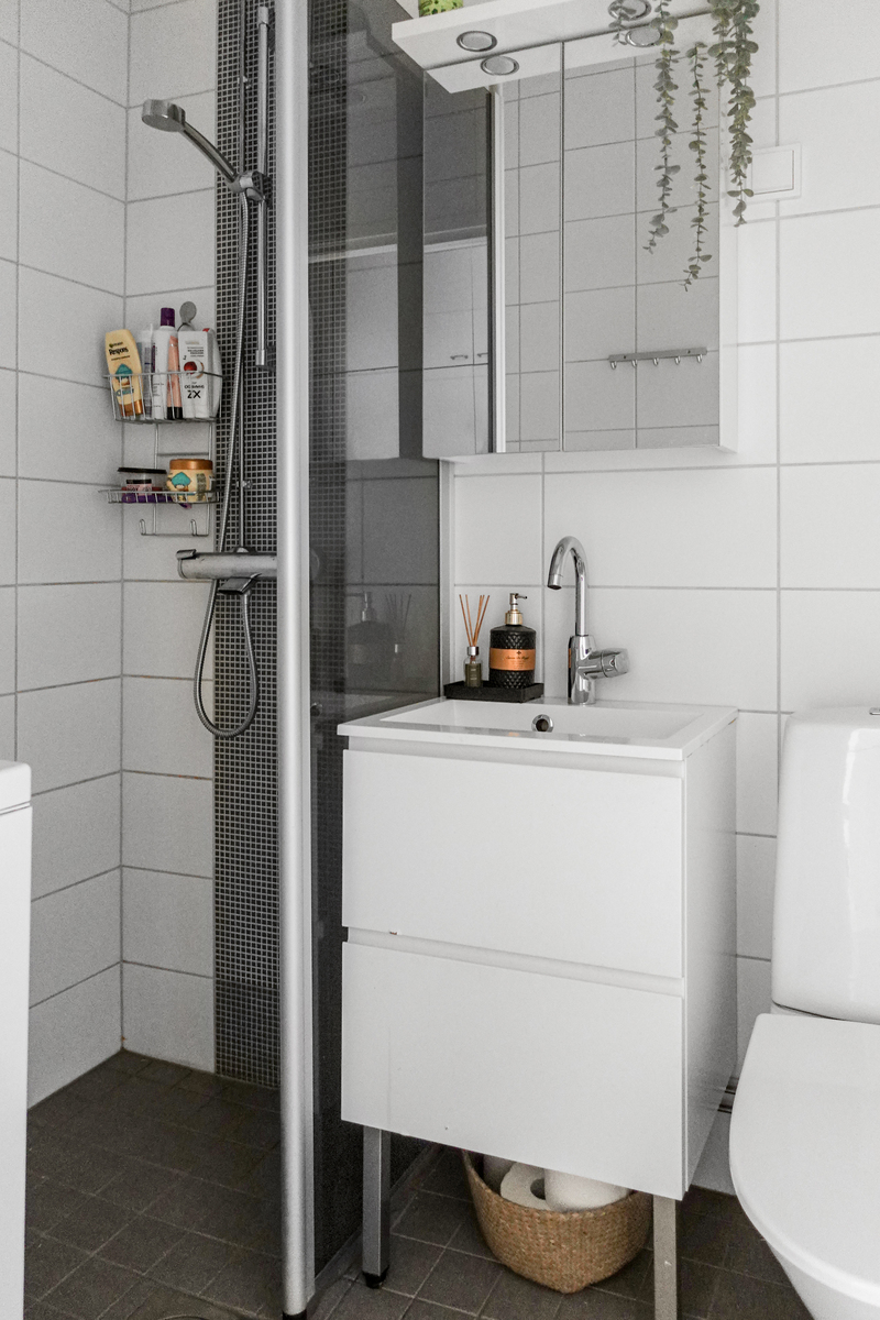 Kylpyhuoneen kuvaus | Suihkuseinä, kylpyhuonekaapisto, peilikaappi, kiinteät valaisimet, pesukoneliitäntä. Lattia laatta, seinät laatta. Kylpyhuone remontoitu v. 2017. |