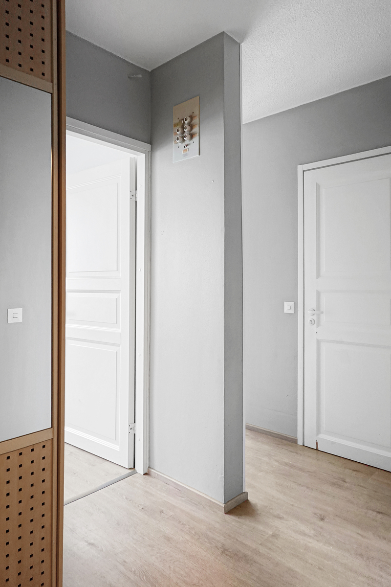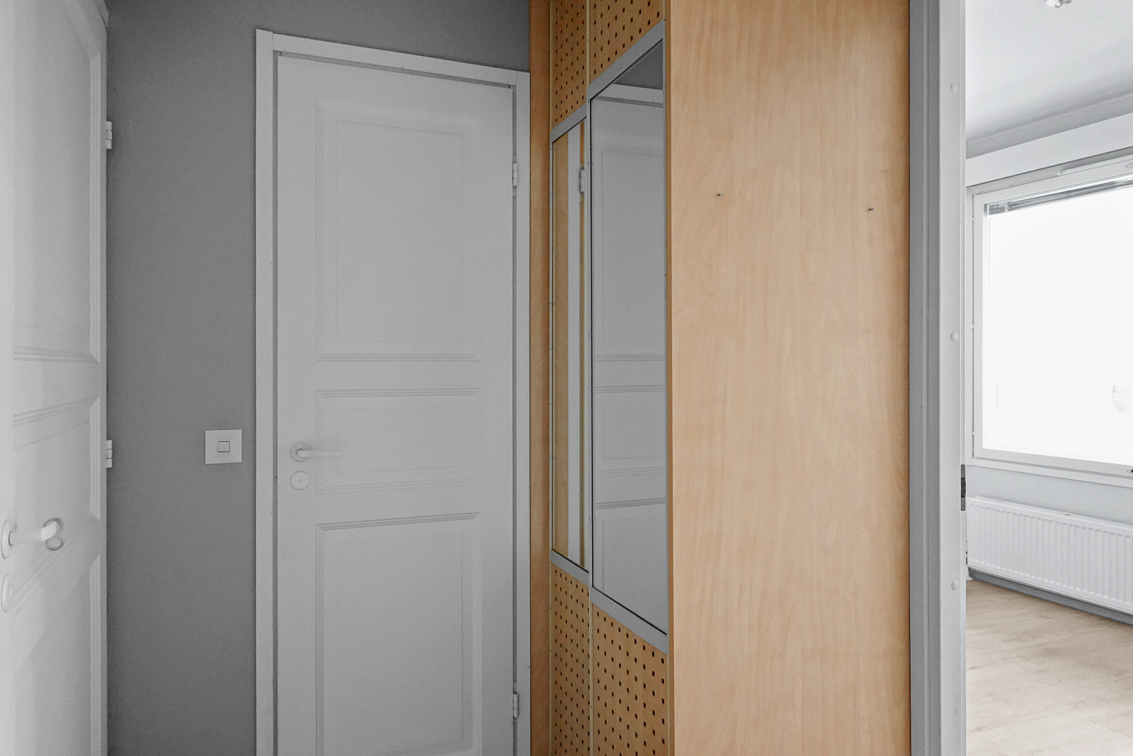 Eteinen: laminaattilattia, seinät ja katto maalattu, liukovikaapisto.