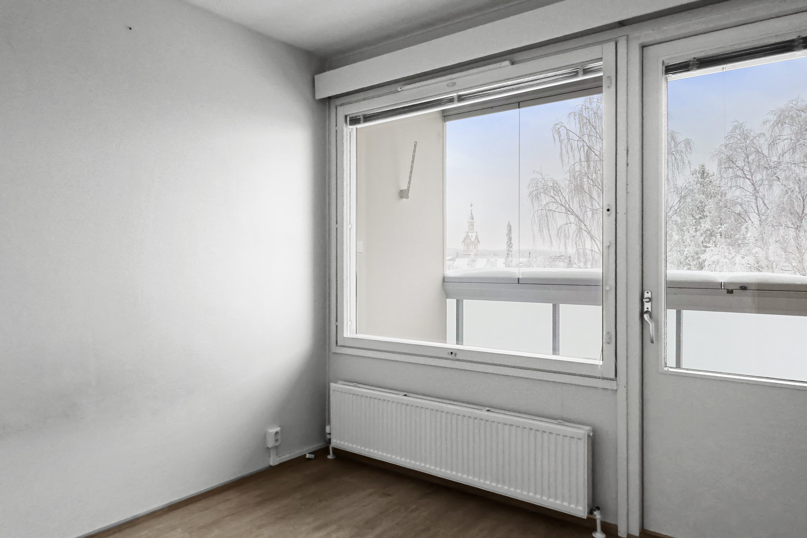 Valoisa hyväpohjainen ylimmän kerroksen kaksio hissitalossa, keskustan palveluiden äärellä.
