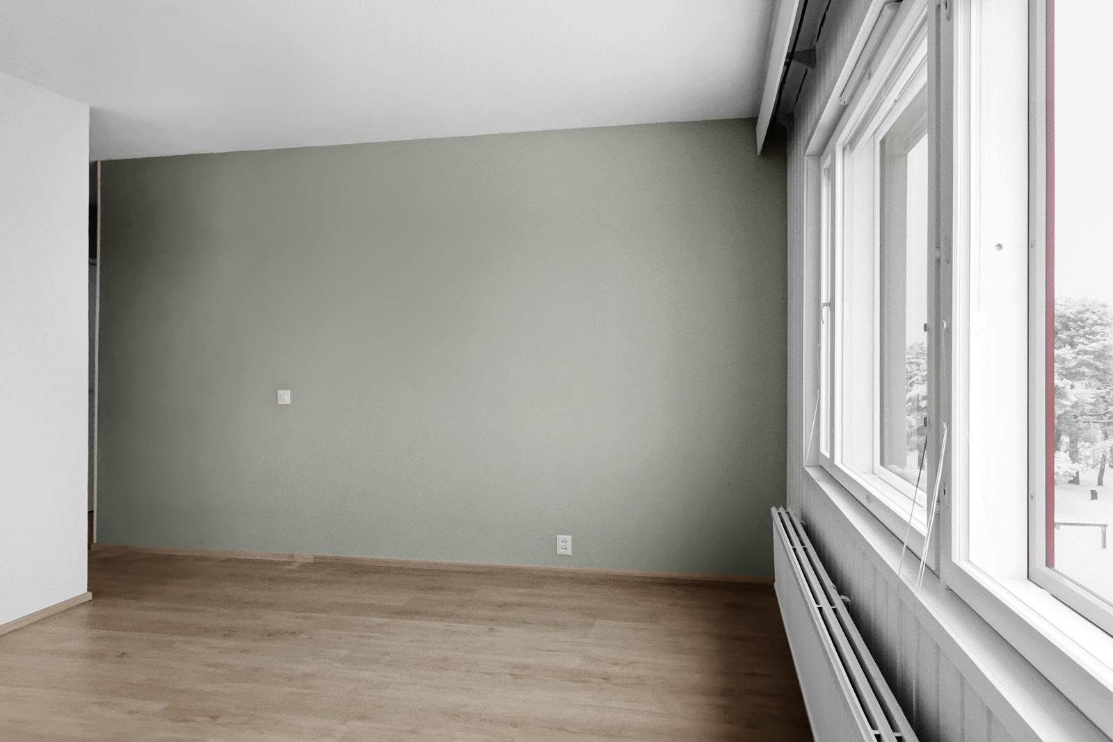 Laminaattilattia, seinät maalattu, katto maalattu. |