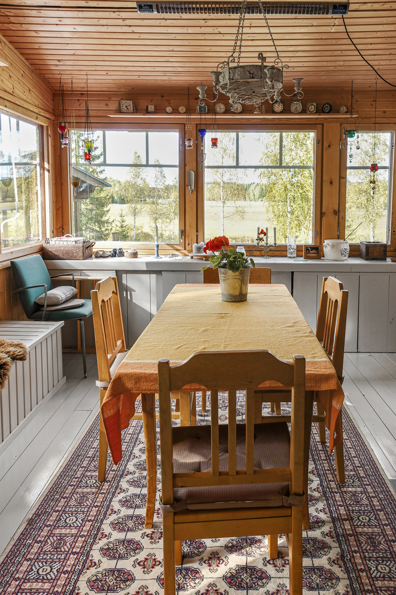 Lisätietoja | Eteinen, kuisti: maalattu puulattia, seinät ja katto paneelia. |