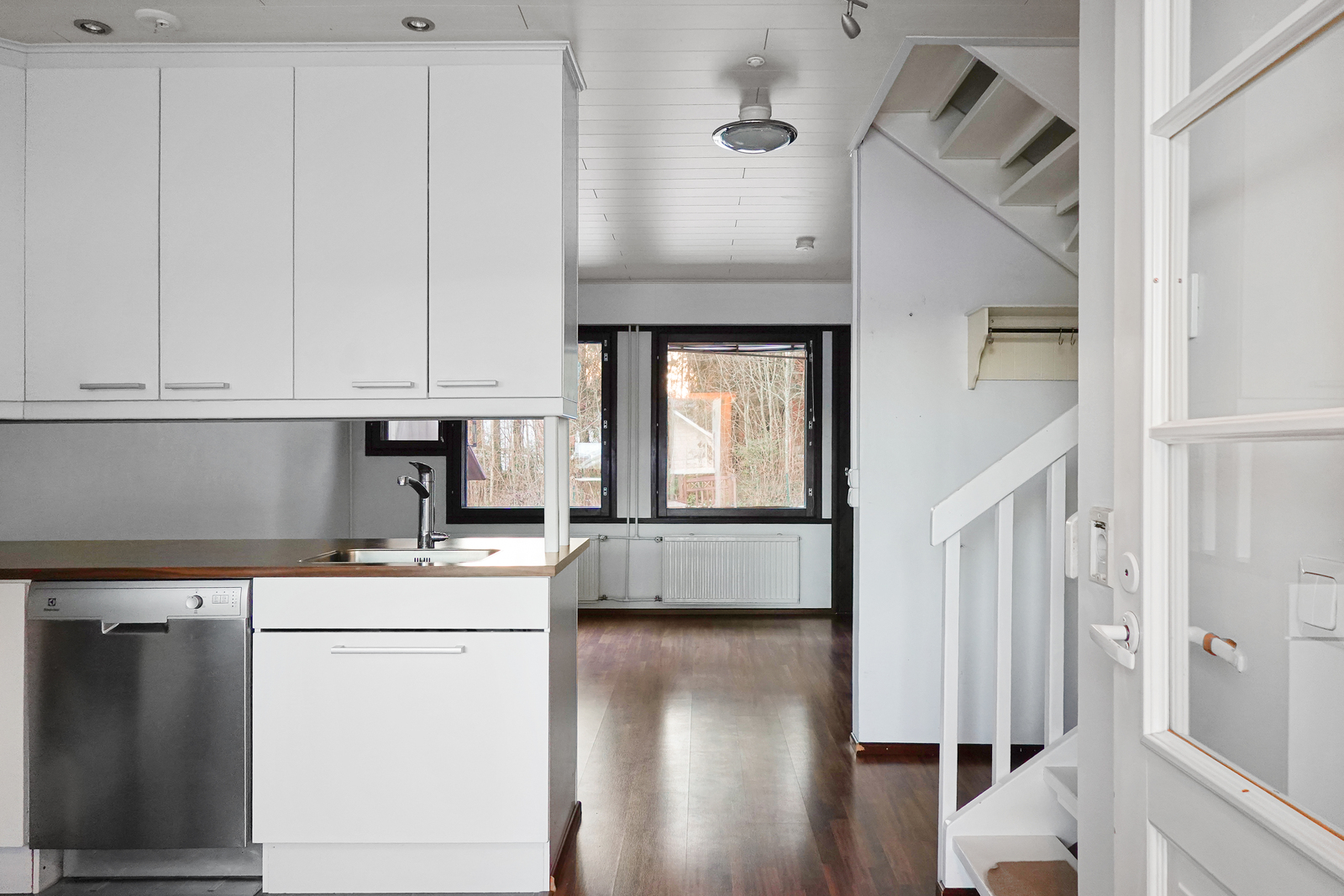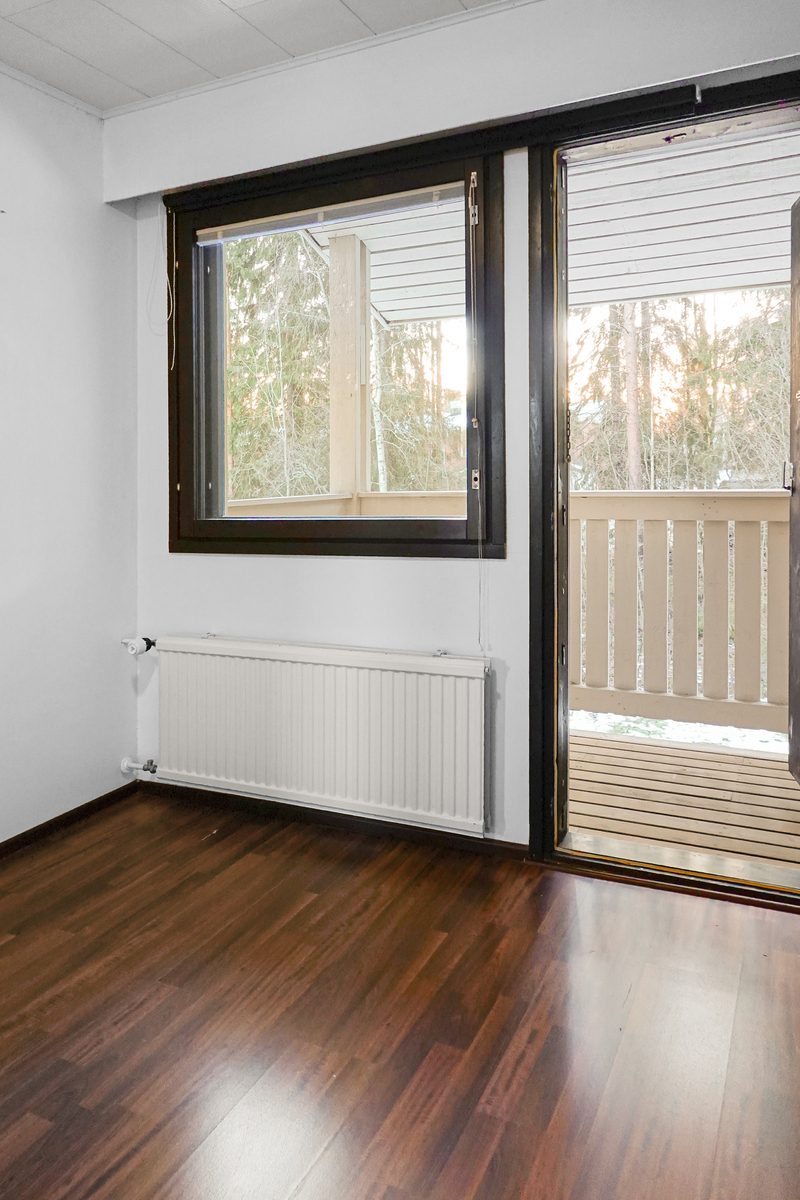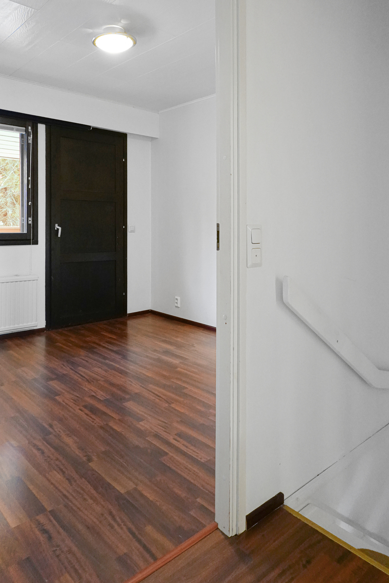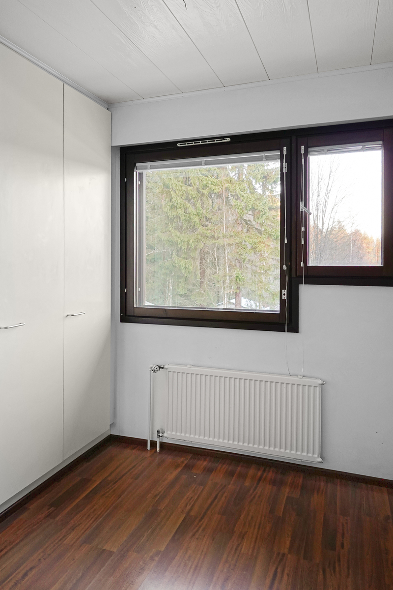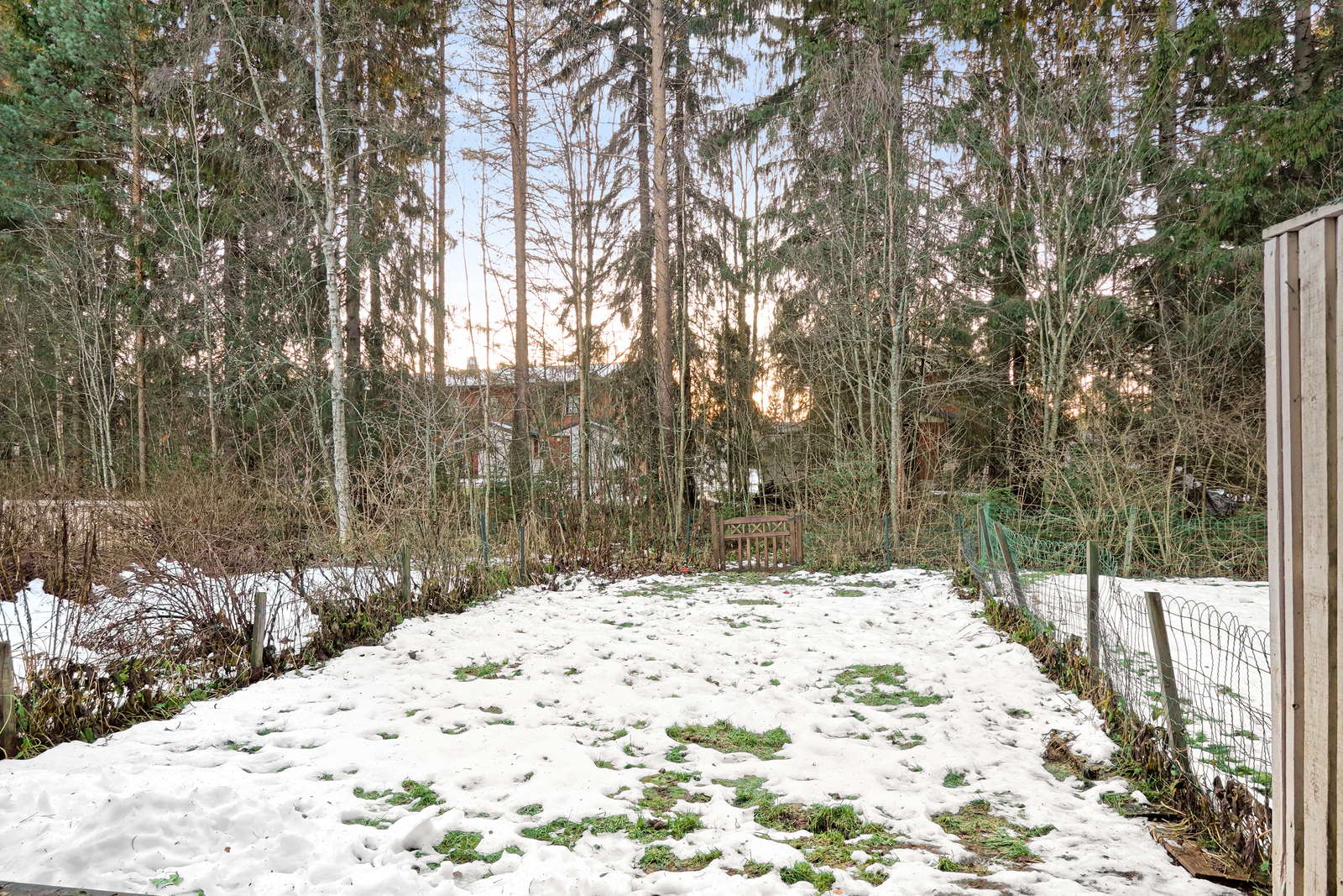 Olohuoneesta avautuu kulku omalle terassille ja takapihalle, joka avautuu rauhaisiin metsämaisemiin. Yläkerrasta löytyy toinen wc sekä parveke, joka tuo ripauksen luksusta arkeen ja mahdollisuuden vaikkapa aamukahvien nauttimiseen. Yläkerrassa on lisäksi kaksi makuuhuonetta ja erillinen monikäyttötila, joka soveltuu hyvin työhuoneeksi tai nukkumiseen.