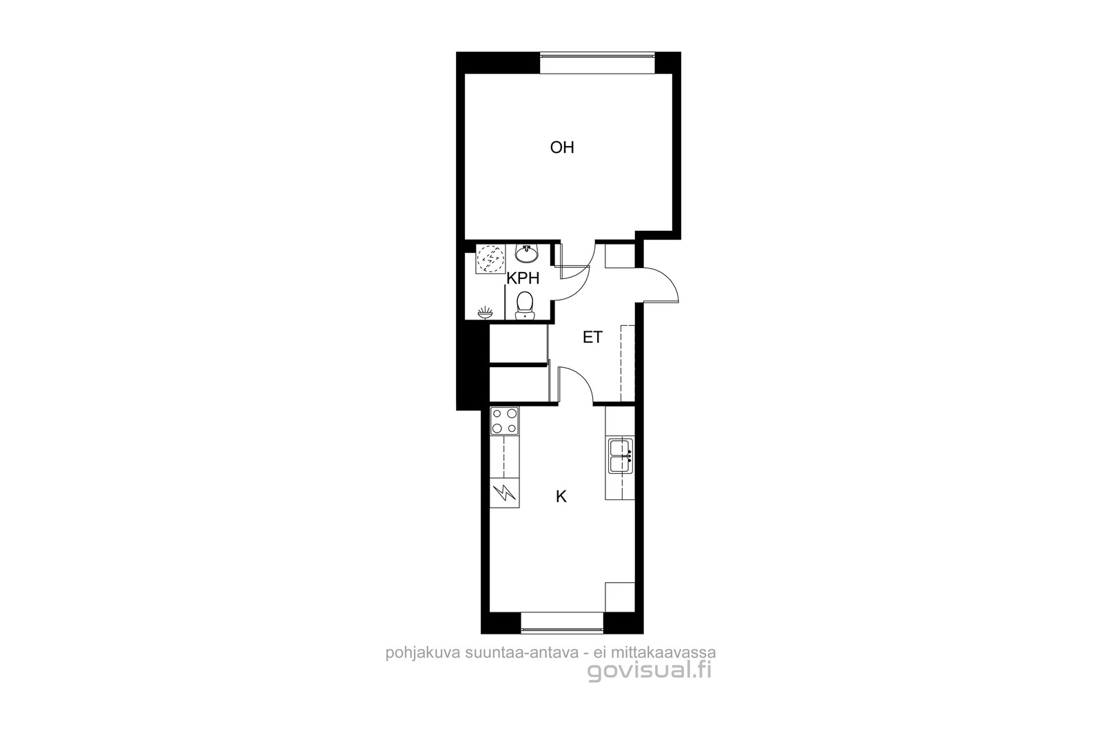 Tämä hyväpohjainen yksiö sijaitsee hissitalon 2. kerroksessa aivan keskustassa. Keittiön ikkunat ovat Kajaaninjoen suuntaisesti ja tilavaan keittiöön mahtuu hyvin ruokailuryhmä. Vaaleasävyisen makuuhuone on helppo sisustaa ja isot ikkunat ovat puolestaan Kauppakadulle päin. Makuuhuoneessa on kaunis alkuperäinen komero puuovilla. Leveät ikkunalaudat antavat huoneistolle viehättävän ilmeen.