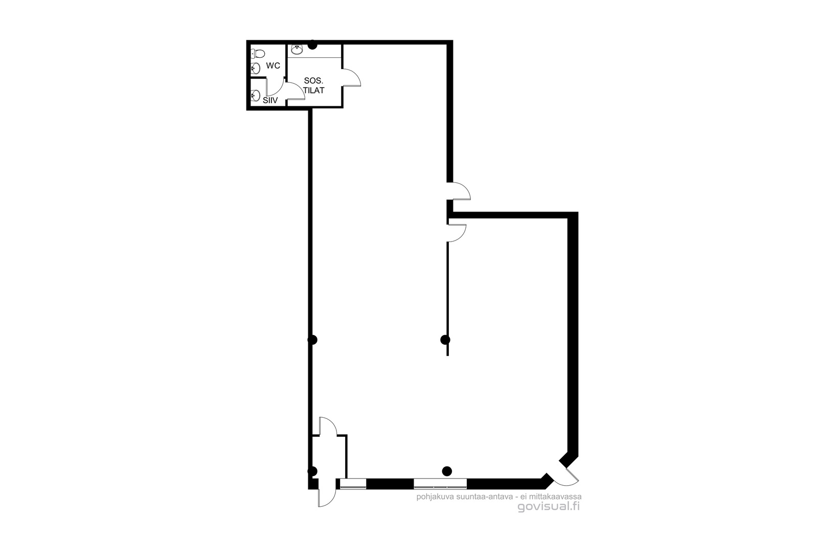 Lisätietoja | Liiketila + minikeittiö + wc, yhteensä 127 m2. Liiketilassa ja keittokomerossalaminaattilattiat ja maalatut seinät. Wc:ssä lattiassa ja seinissä muovimatto. Minikeittiövarustukseen kuuluu jääkaappi ja kaksi sähköliettä. |