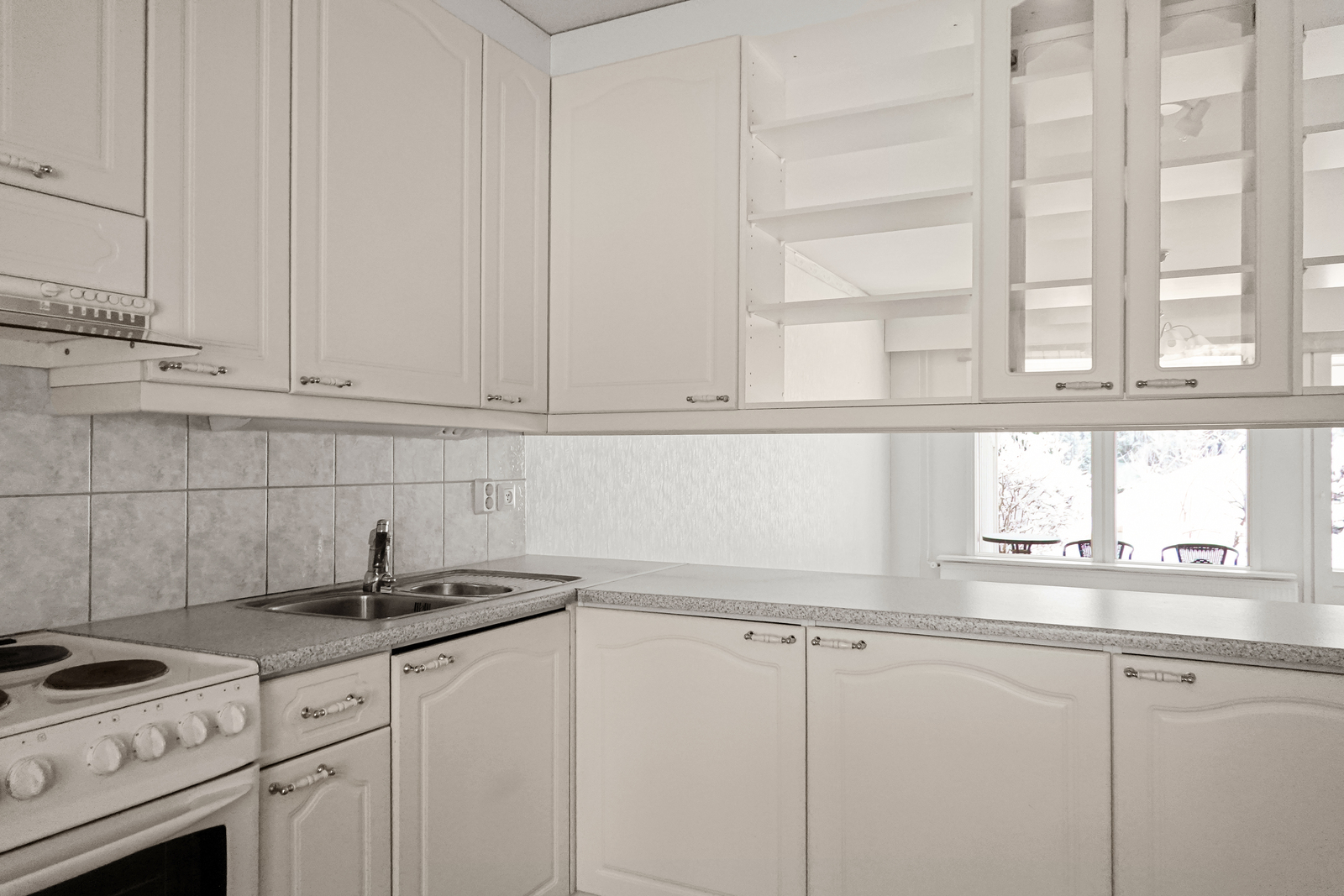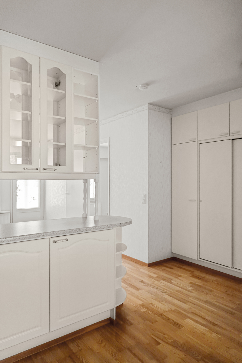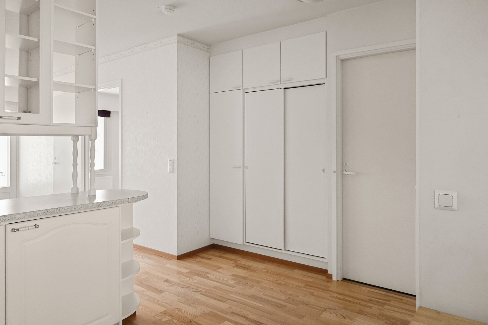 | Keittiön kuvaus | Lautaparketti, seinät maalattu, kaapistot, jääkaappi/pakastin, sähköliesi, liesituuletin |