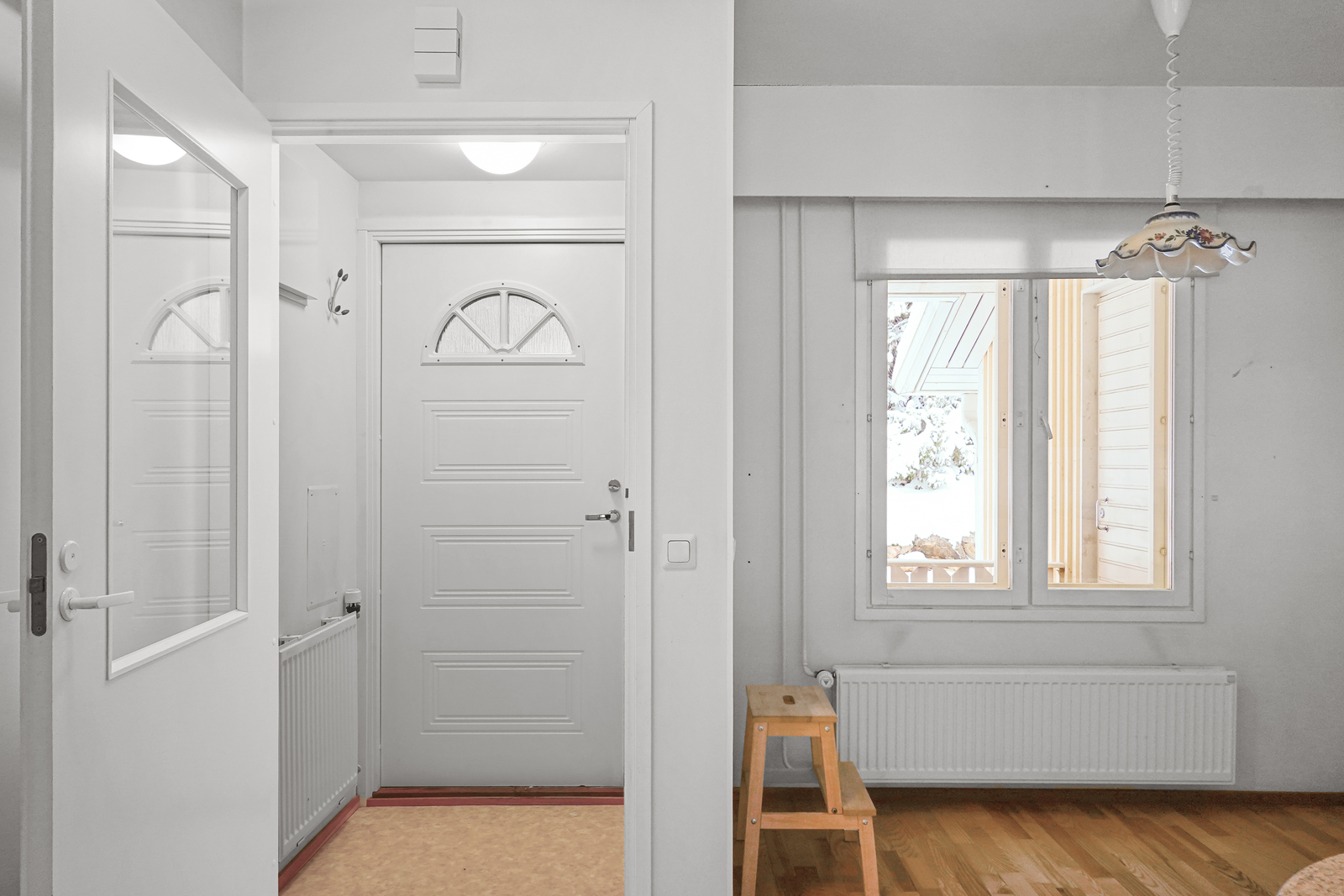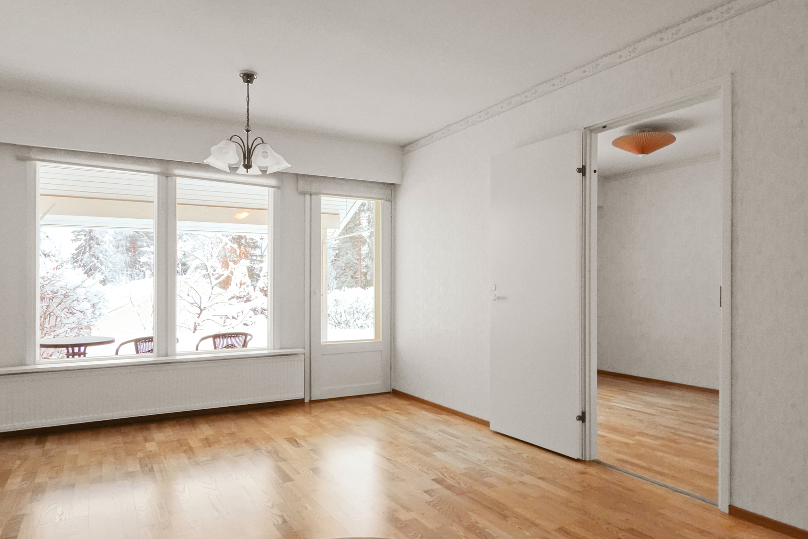 | Olohuoneen kuvaus | Lautaparketti, seinät tapetoitu / maalattu. Oohuoneesta kulku terassille / oleskelupihallel |