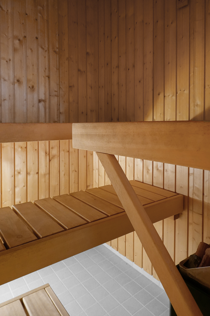 | Sauna | lattia laatoitettu, seinät paneloitus, sähkökiuas |