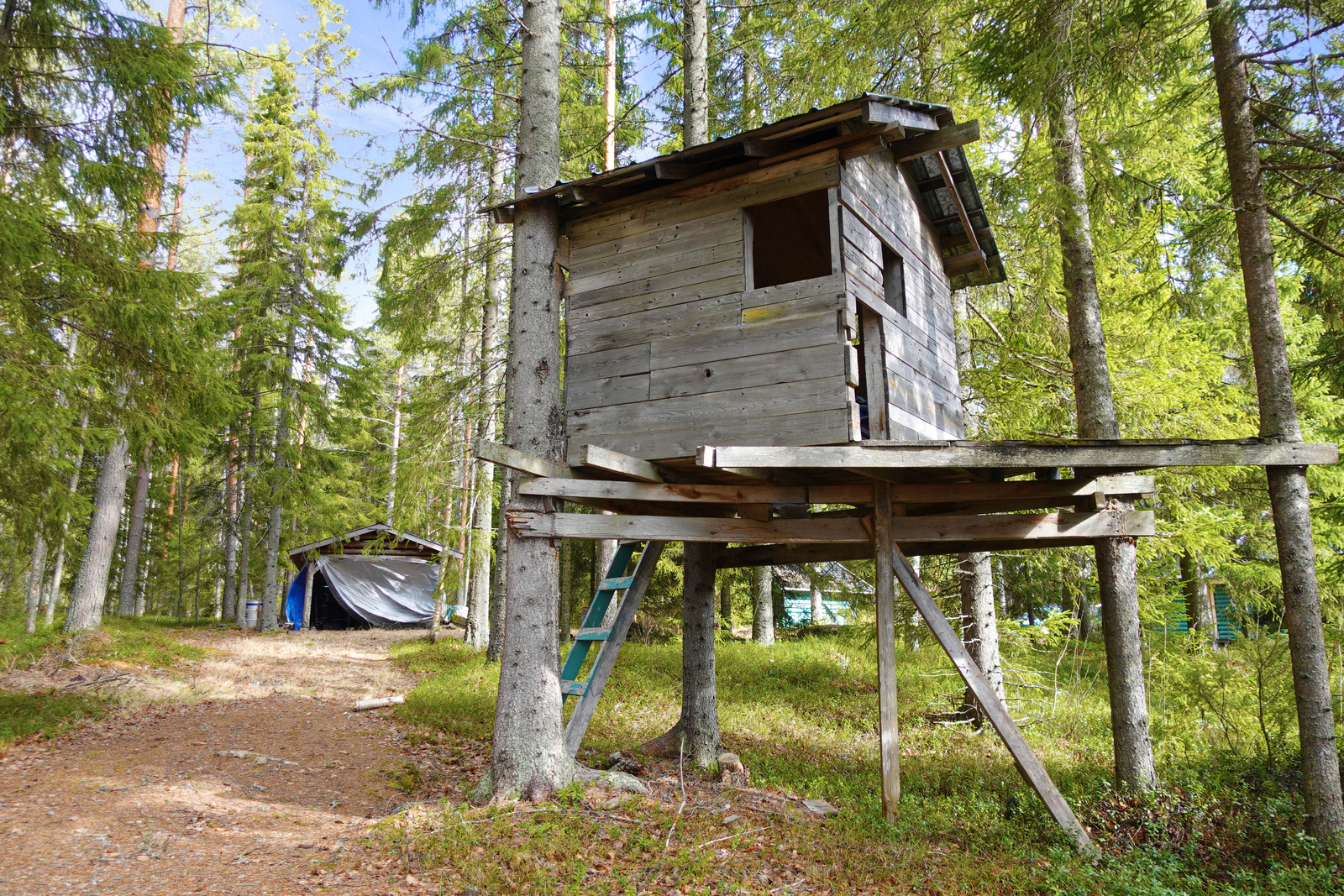Pihalla lisäksi kesäkeittiö, grillikatos, venekatos/rakoliiteri, aitta. Rantasauna käytettävissä vuoden ympäri, nukkumiskäytössä vain kesäisin. Talvella saunalle kantovesi, tarvittaessa myös sähkö-/kaminalämmitys. Saunatuvassa parvitila. Honkarakenteen rantasauna rak. v. 1986, aitta aiemmin. |