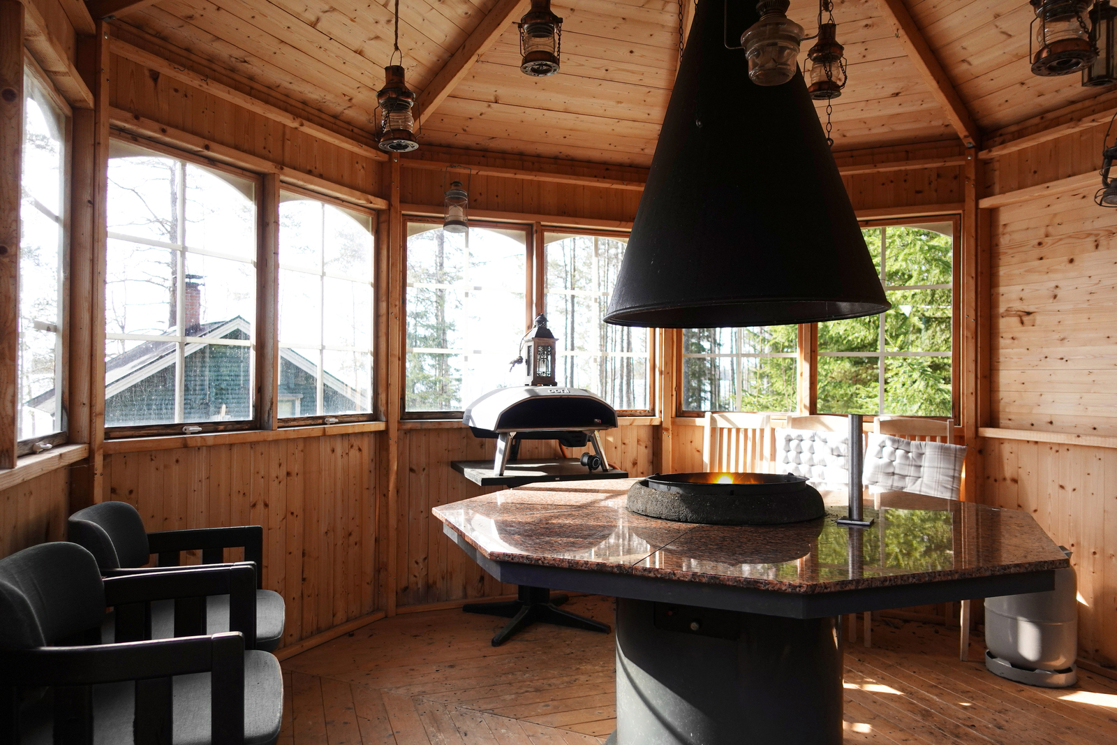 Pihapiiristä löytyy lisäksi kesäkeittiö, grillikatos sekä erillinen saunarakennus, jossa on lisämajoitustilaa kesäkäyttöön. Pihapiiri on täydellinen paikka nauttia lämpimistä päivistä ystävien ja perheen kanssa.