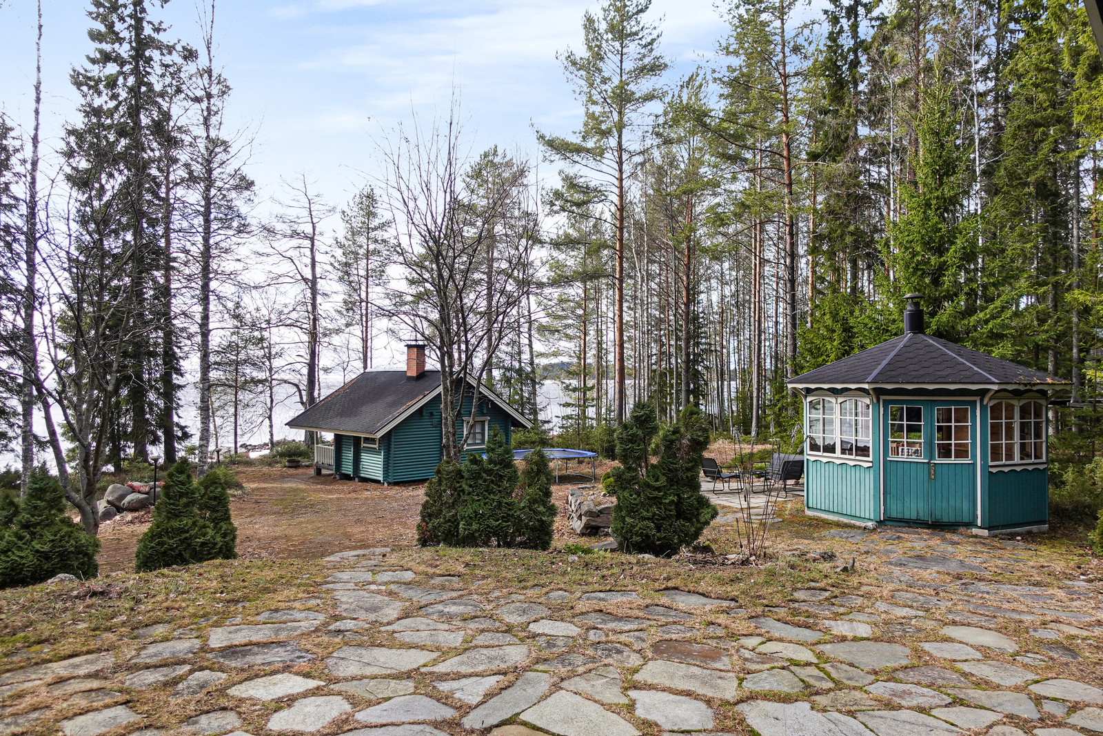 Tilava piha-alue tarjoaa runsaasti mahdollisuuksia niin oleskeluun, juhlien järjestämiseen kuin puutarhanhoitoonkin. Perheen pienimpiä ilahduttaa oma puumaja, ja kokonaisuutta täydentävät käytännöllinen puuvarasto sekä oma veneenlaskupaikka tontilla.