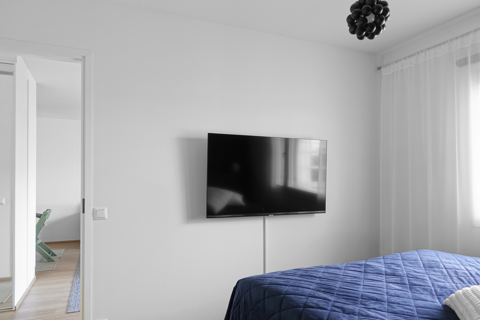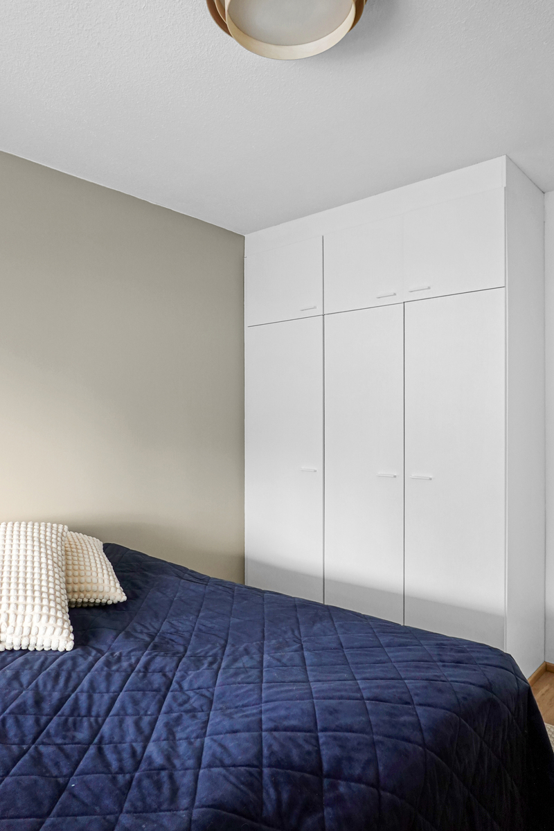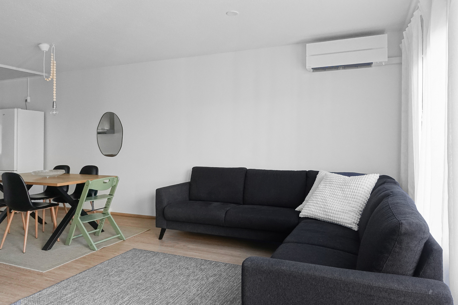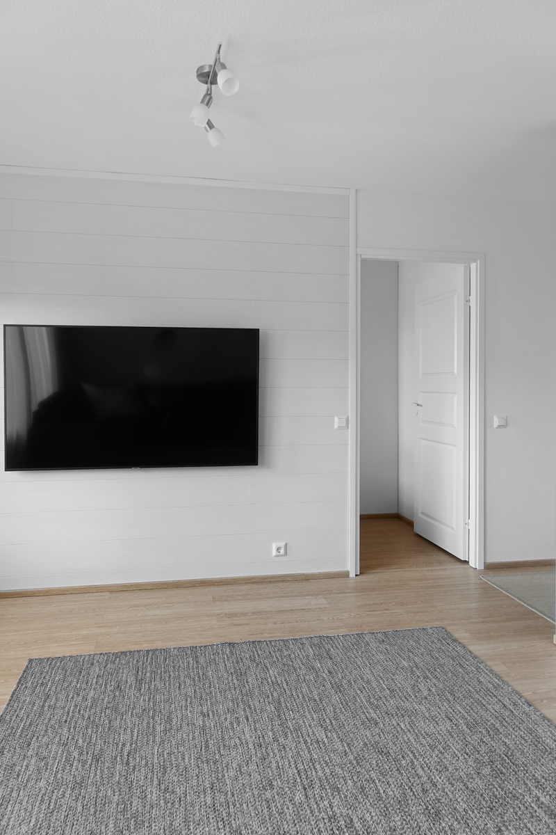 Vinyylilankkulattia (2023), seinät ja katto maalattu (v. 2023), ilmalämpöpumppu |