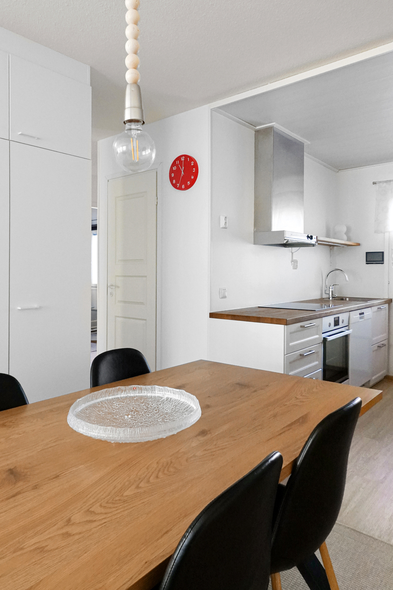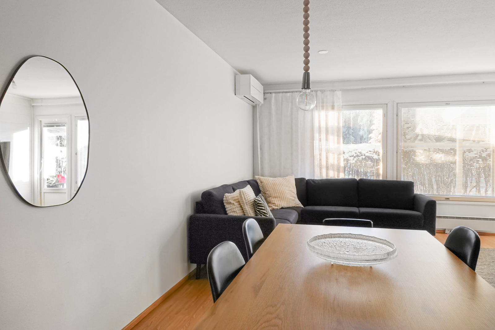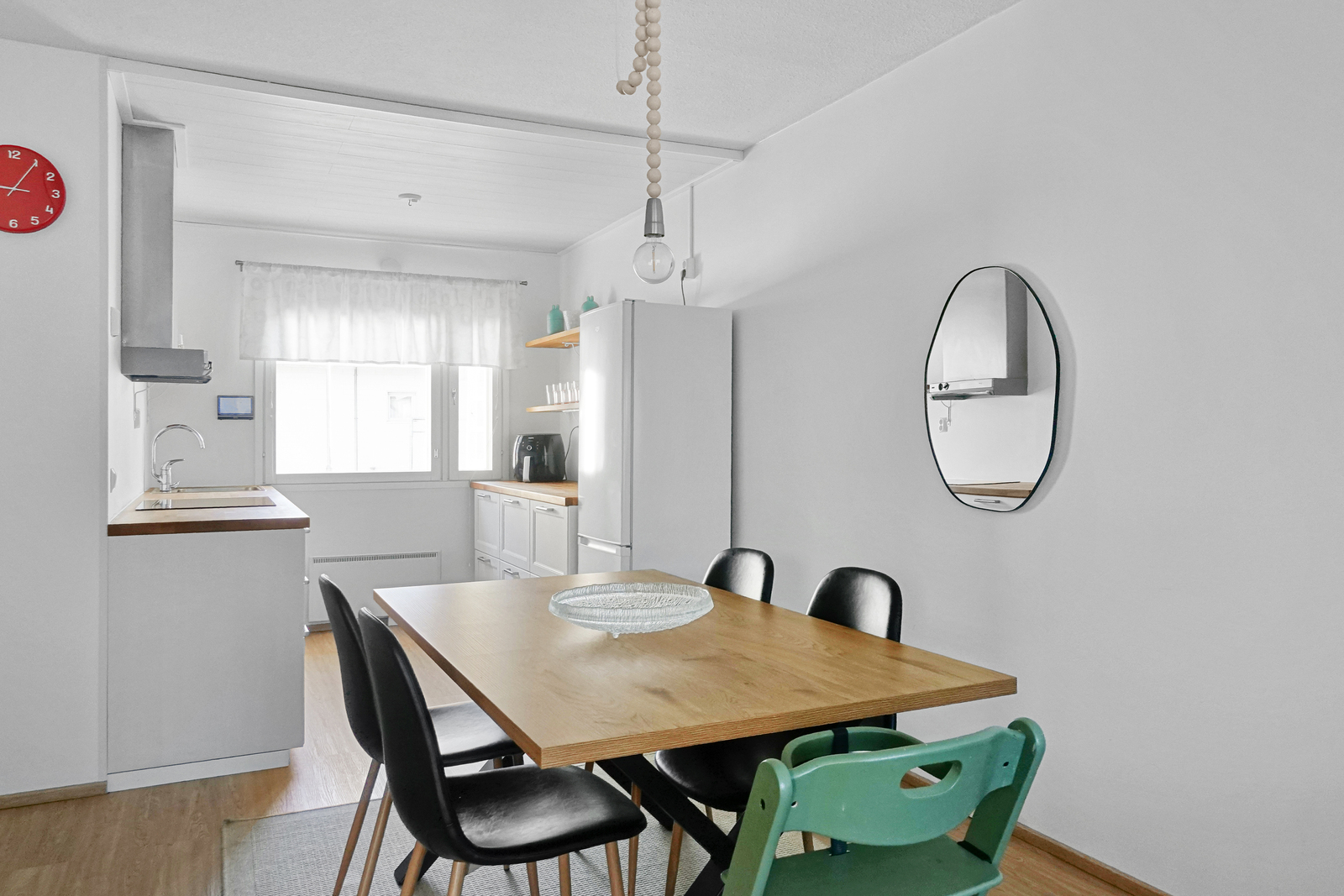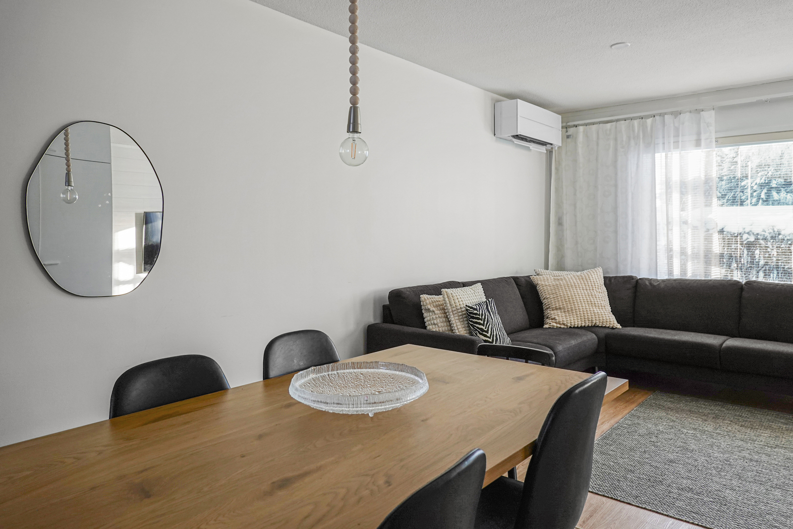 Nuorekas ja valoisa rivitalon päätyhuoneisto nyt tarjolla suositulla asuinalueella Rauhalantiellä. Tässä viihtyisässä kodissa on kaunis v. 2015 uusittu keittiö. Sisustusmateriaalit on huolella valittu ja kodissa on kauniita yksityiskohtia kuten keittiön paneloitu katto. Harmonisen tunnelman luo kaunis värimaailma - seinät ja katot on maalattu sekä vaalea vinyylilattia on uusittu v. 2023. Toimiva pohjaratkaisu, hyvät säilytystilat sekä erillinen tilava wc lisäävät asumismukavuutta. Kaiken kruunaa oma tunnelmallinen sauna ja vaaleasävyinen pesutila, jossa on tilaa vaatehuollolle. Tässä viihtyisässä kodissa on myös ilmalämpöpumppu,
