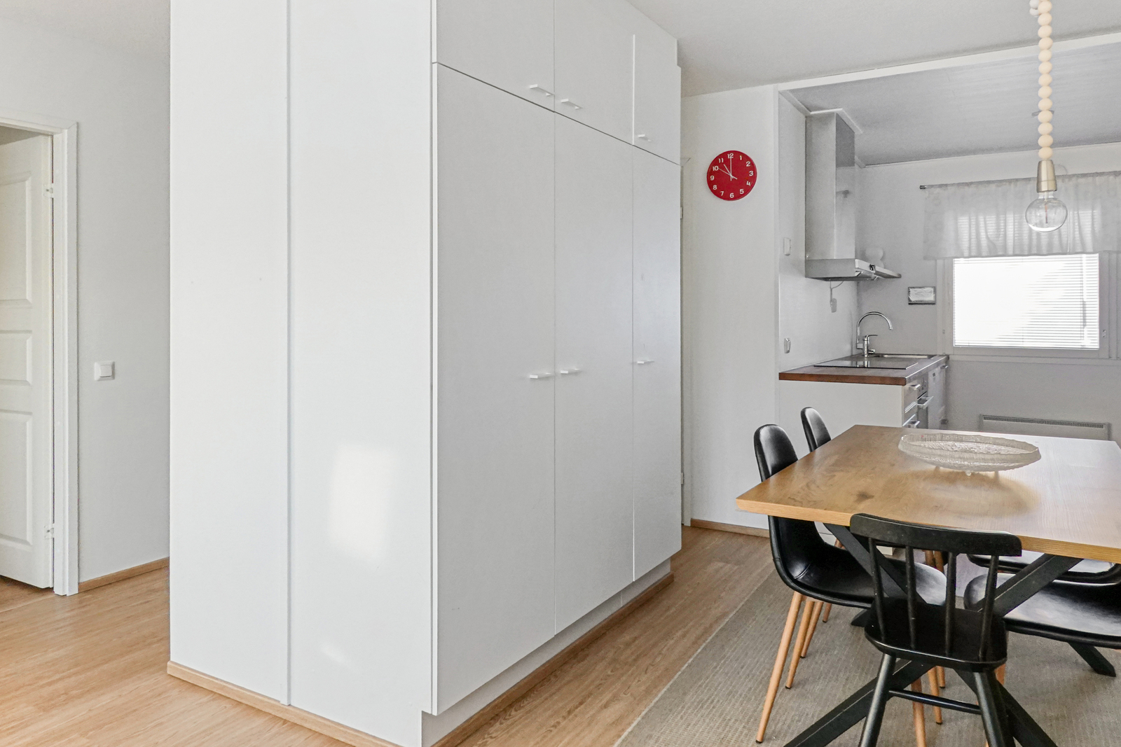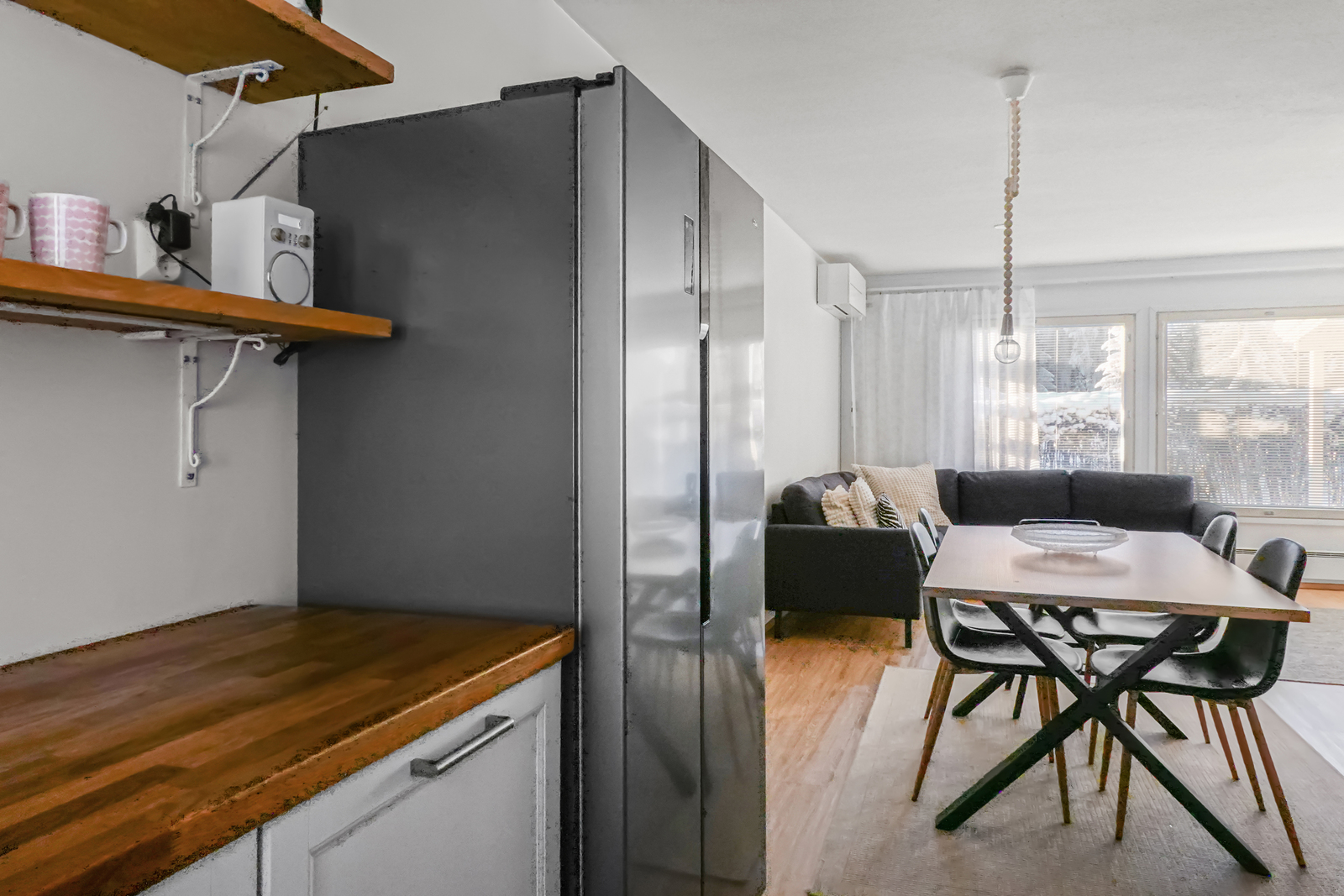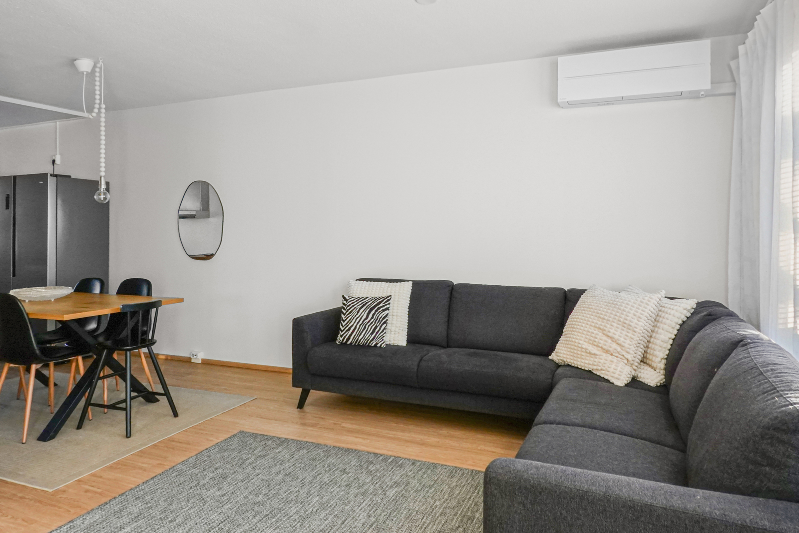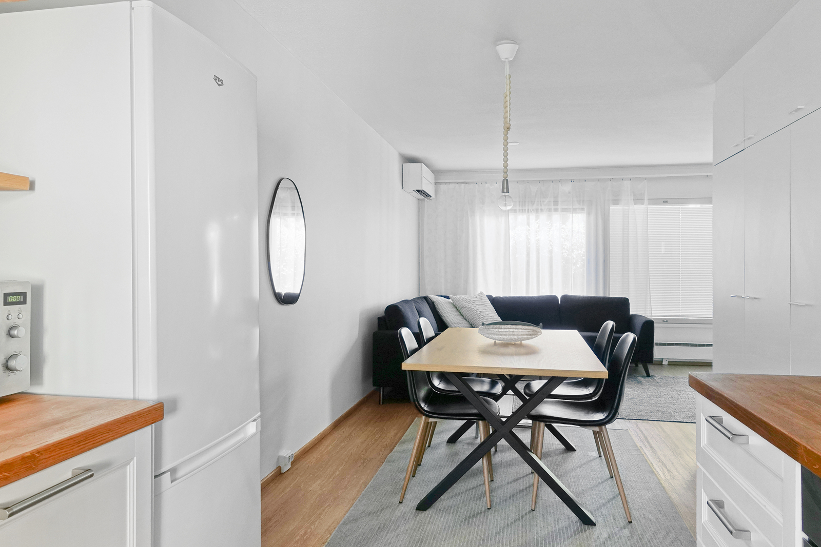 Nuorekas ja valoisa rivitalon päätyhuoneisto nyt tarjolla suositulla asuinalueella Rauhalantiellä. Tässä viihtyisässä kodissa on kaunis v. 2015 uusittu keittiö. Sisustusmateriaalit on huolella valittu ja kodissa on kauniita yksityiskohtia kuten keittiön paneloitu katto. Harmonisen tunnelman luo kaunis värimaailma - seinät ja katot on maalattu sekä vaalea vinyylilattia on uusittu v. 2023. Toimiva pohjaratkaisu, hyvät säilytystilat sekä erillinen tilava wc lisäävät asumismukavuutta. Kaiken kruunaa oma tunnelmallinen sauna ja vaaleasävyinen pesutila, jossa on tilaa vaatehuollolle. Tässä viihtyisässä kodissa on myös ilmalämpöpumppu,
