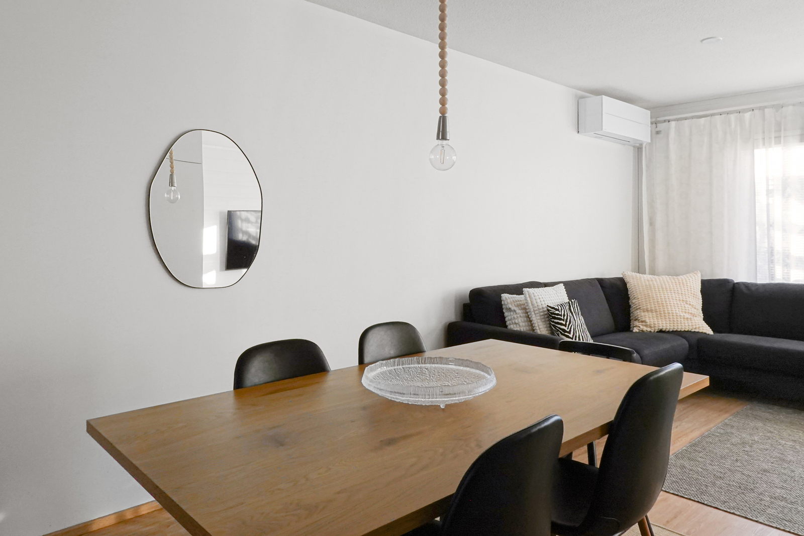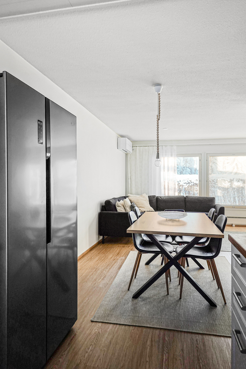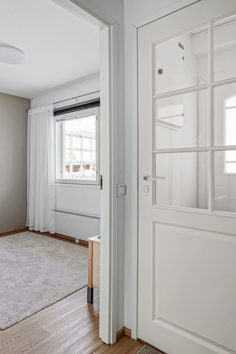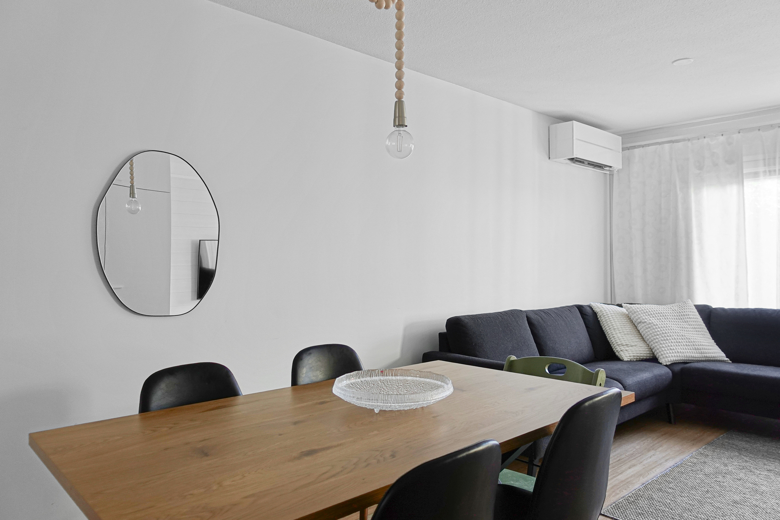 Nuorekas ja valoisa rivitalon päätyhuoneisto nyt tarjolla suositulla asuinalueella Rauhalantiellä. Tässä viihtyisässä kodissa on kaunis v. 2015 uusittu keittiö. Sisustusmateriaalit on huolella valittu ja kodissa on kauniita yksityiskohtia kuten keittiön paneloitu katto. Harmonisen tunnelman luo kaunis värimaailma - seinät ja katot on maalattu sekä vaalea vinyylilattia on uusittu v. 2023. Toimiva pohjaratkaisu, hyvät säilytystilat sekä erillinen tilava wc lisäävät asumismukavuutta. Kaiken kruunaa oma tunnelmallinen sauna ja vaaleasävyinen pesutila, jossa on tilaa vaatehuollolle. Tässä viihtyisässä kodissa on myös ilmalämpöpumppu,