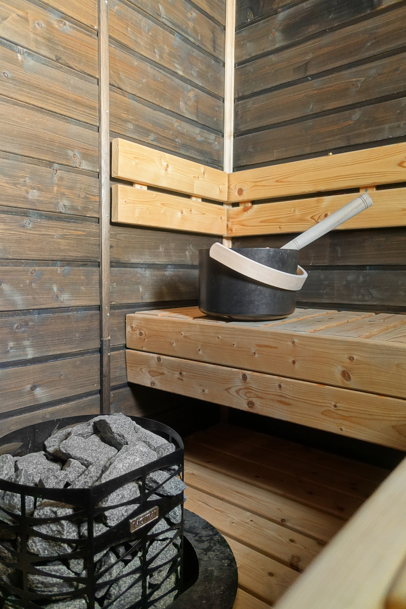Sähkökiuas, saunan panelointi ja lauteet uusittu 2010.