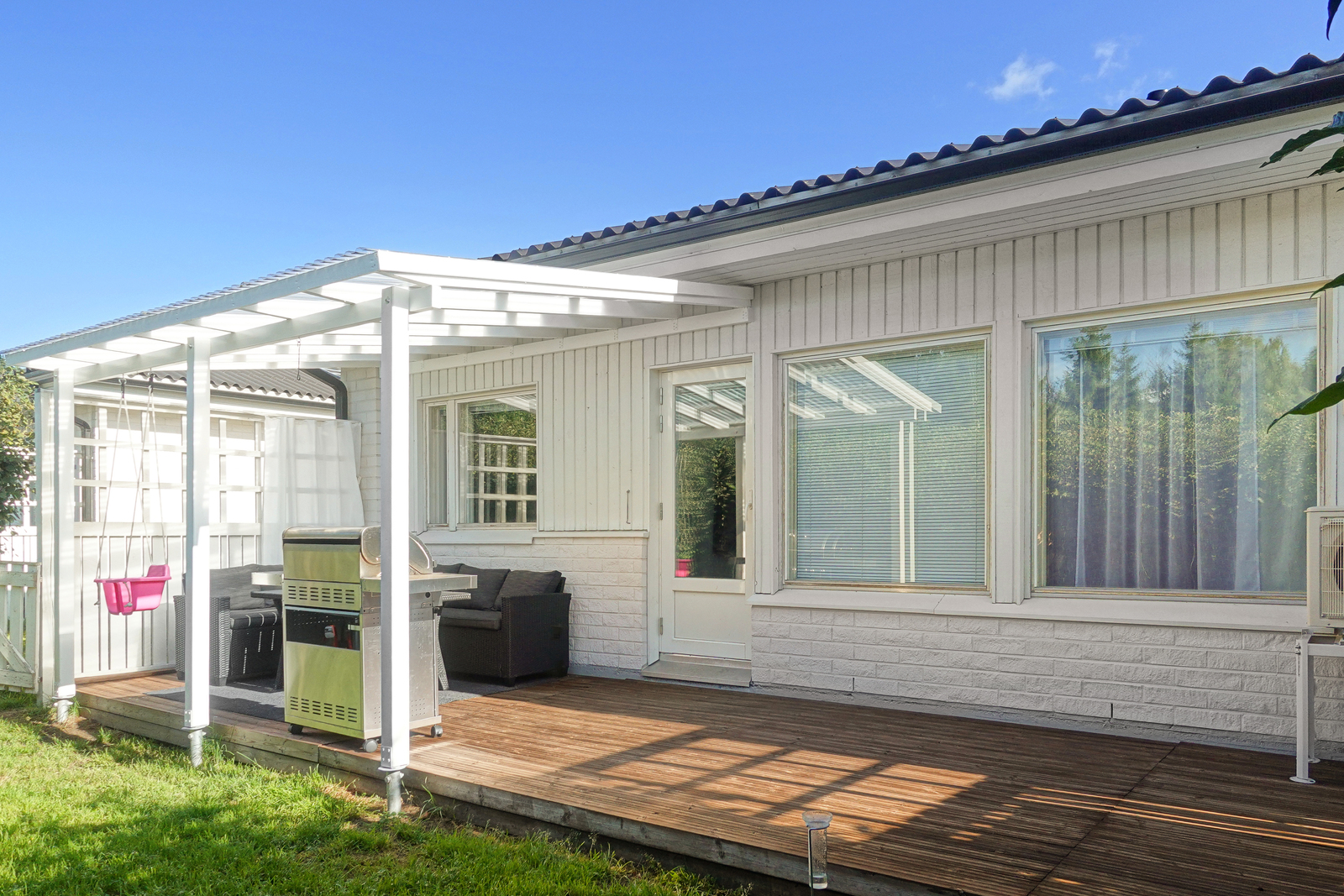 Aurinkoinen, helppohoitoinen oleskelupiha teraseineen avautuu lounaaseen ja ihanan oleskeluterassin valokate on asennettu v. 2024. Pihan puoleinen nurmikko on uusittu v. 2023.