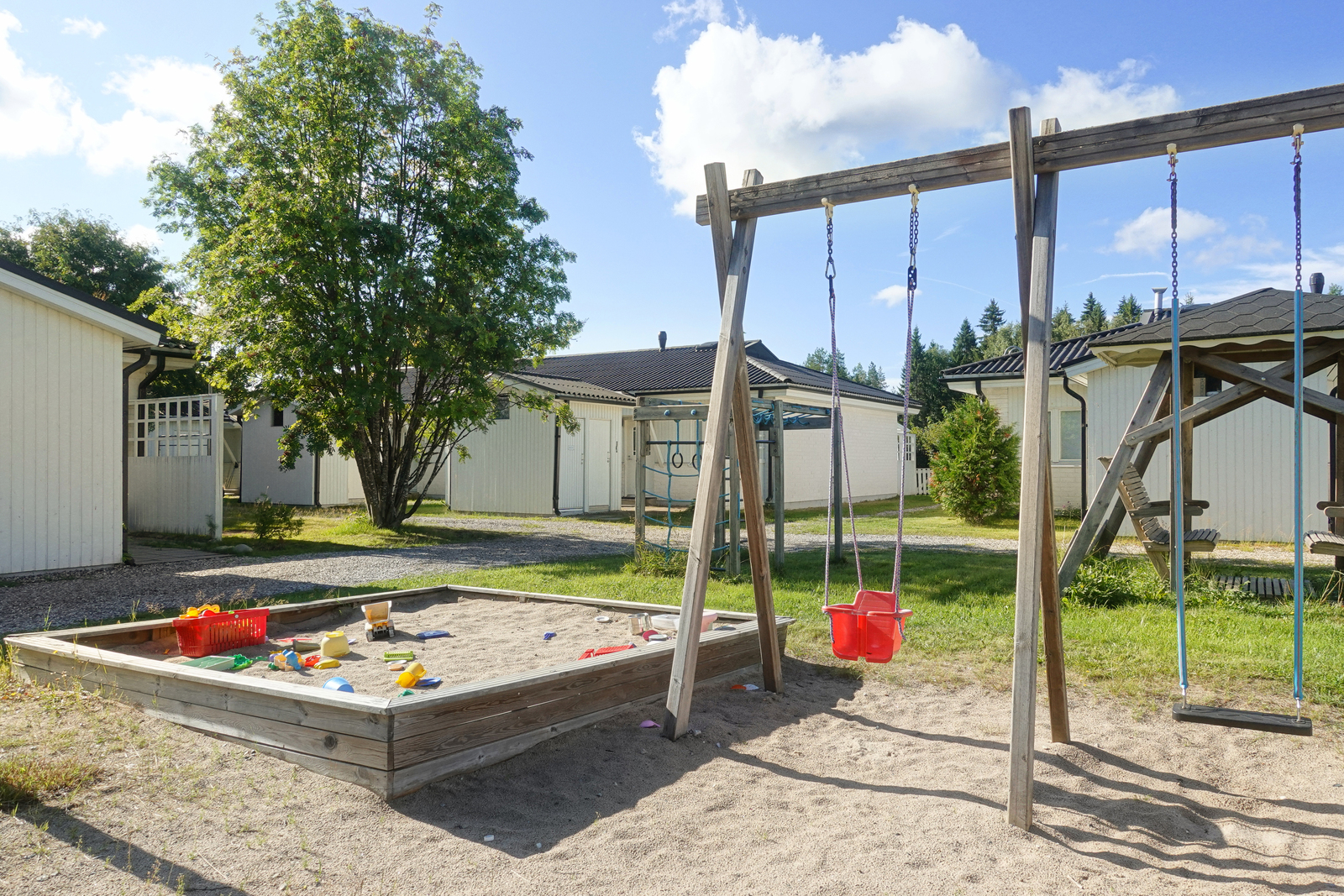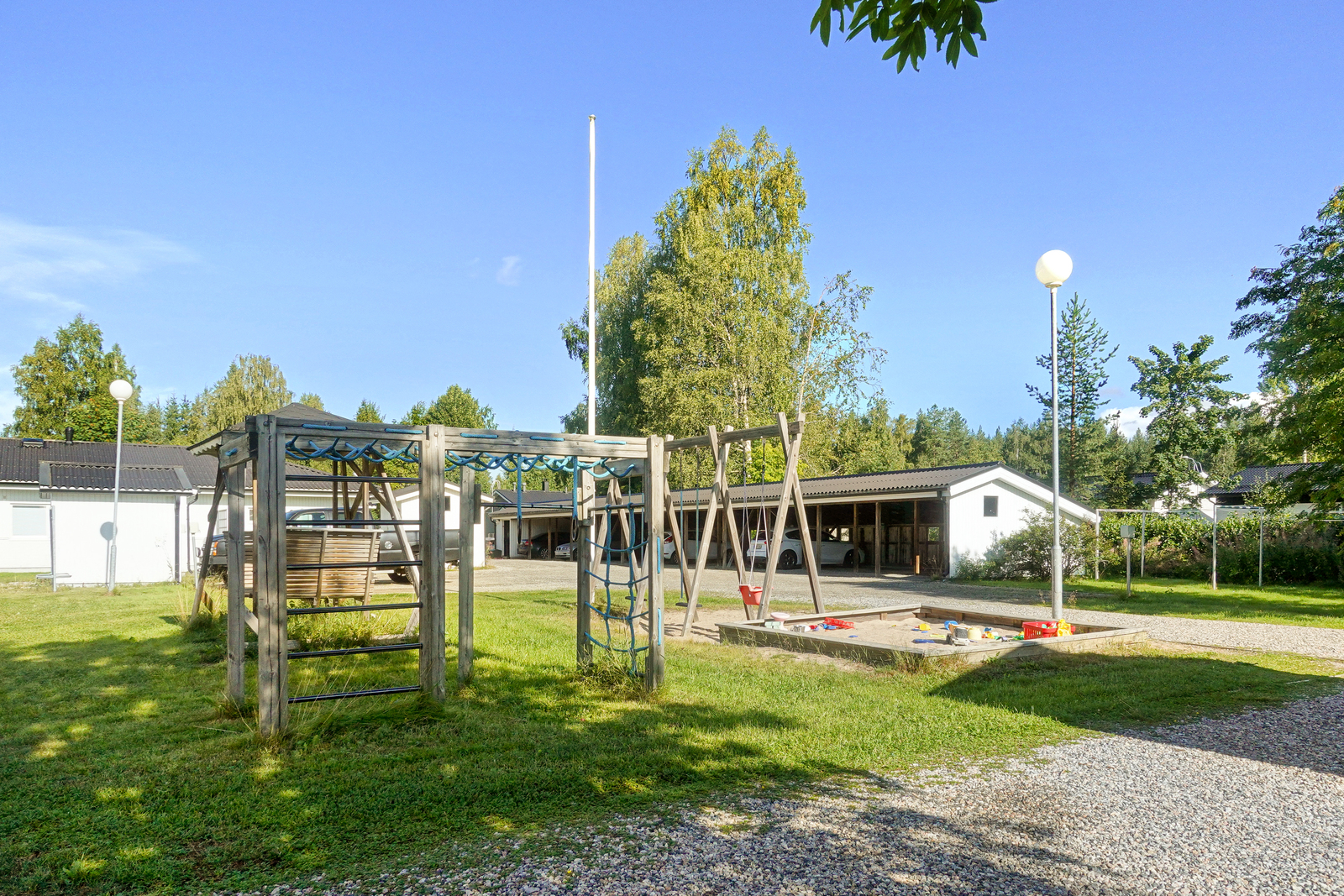 Taloyhtiön piha-alueella on viihtyisä alue, jossa lasten leikit sujuvat mukavasti ja