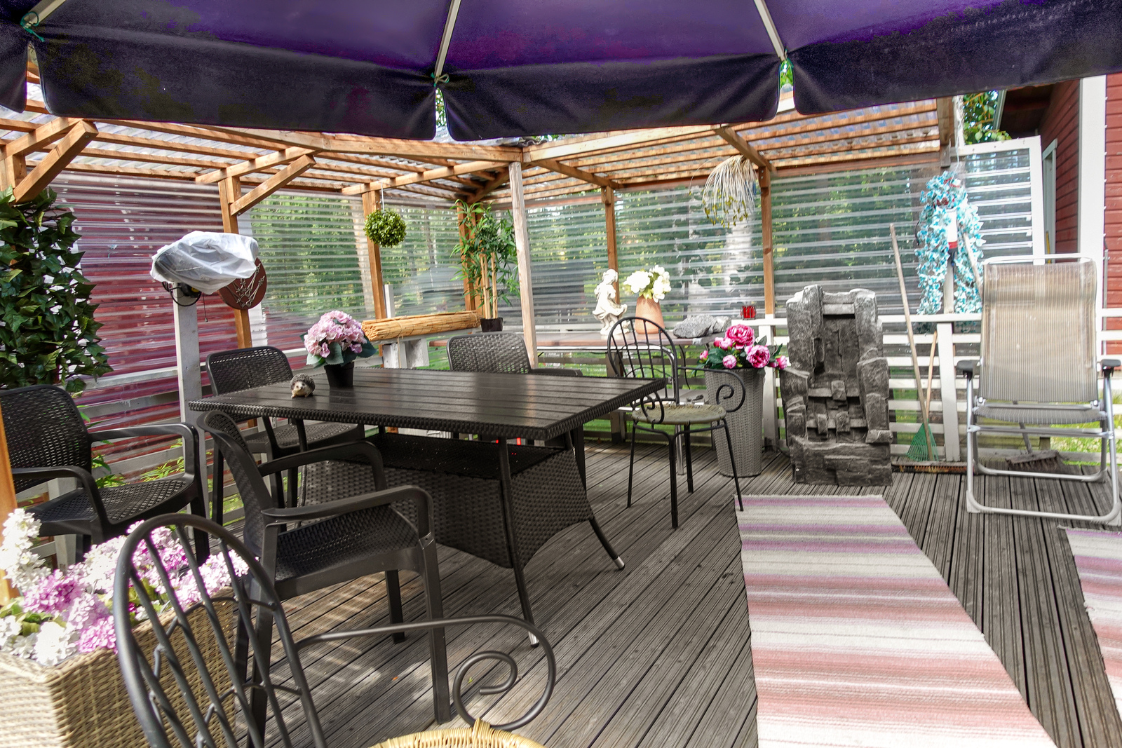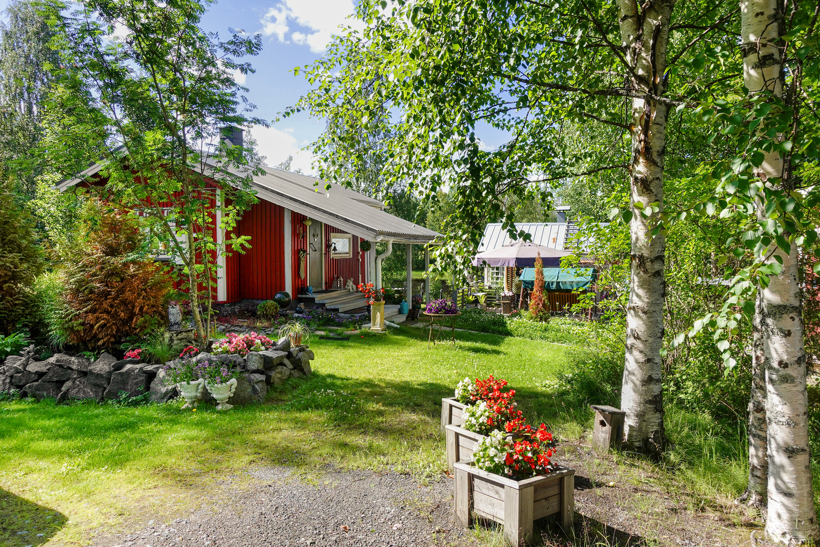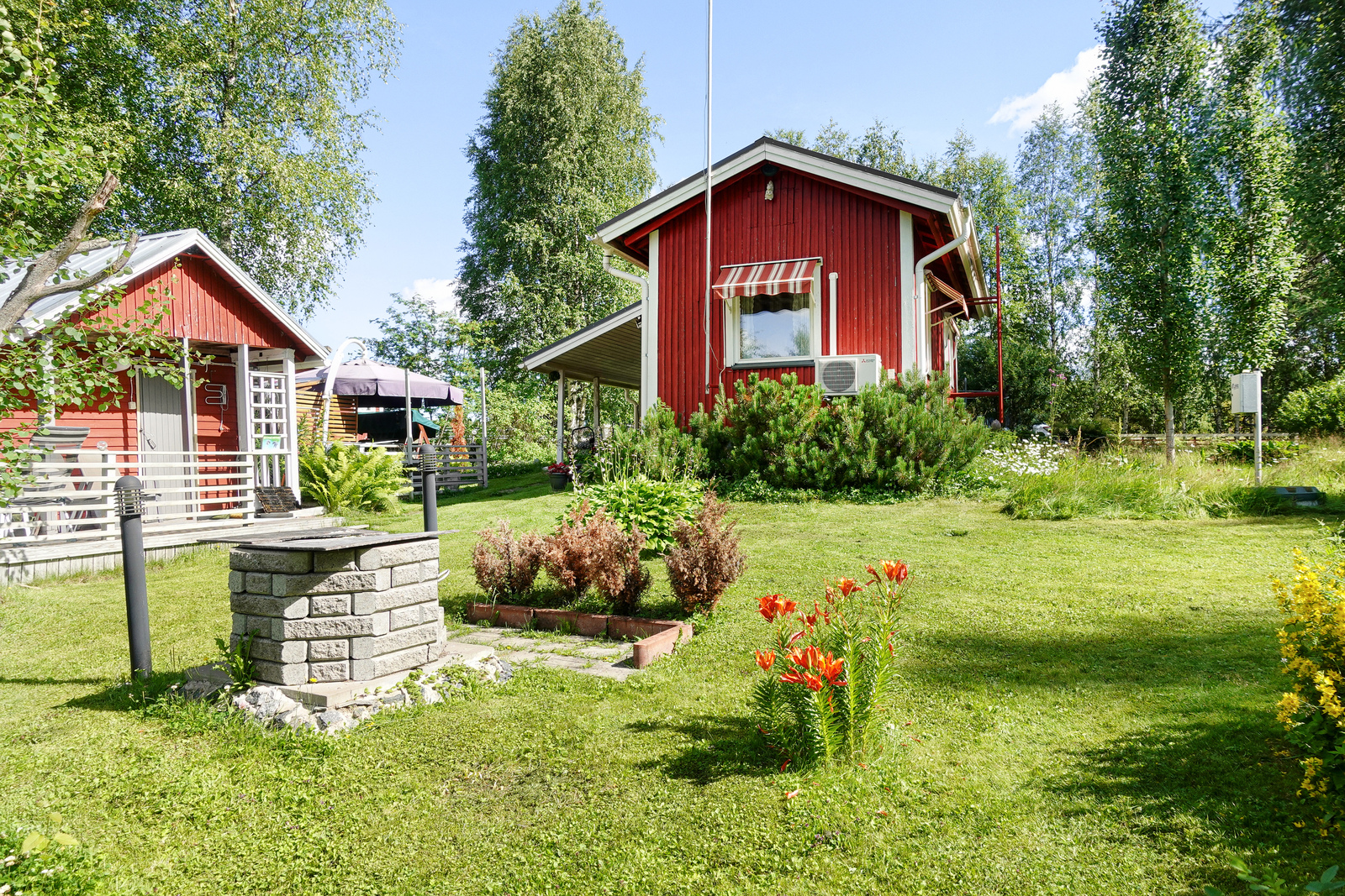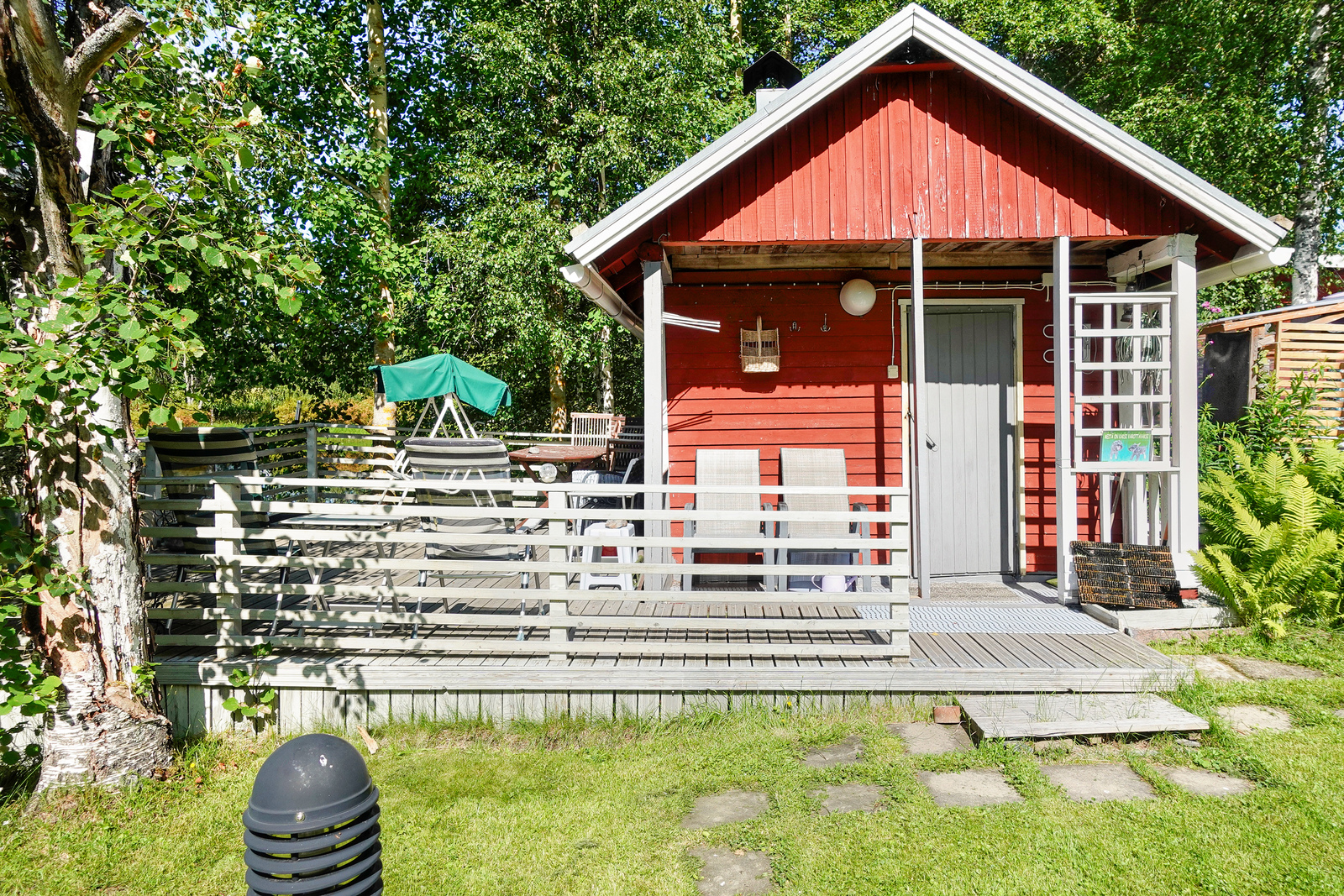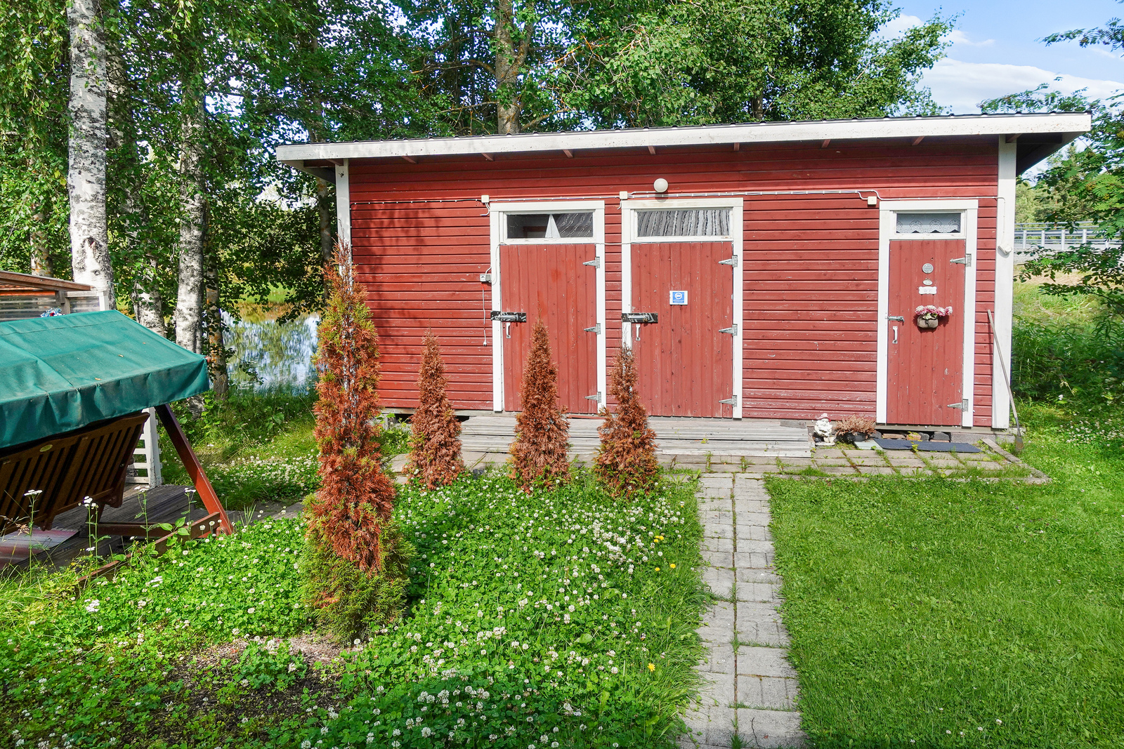 Mökkeilyelämän kruunaa pihalla oleva rantasauna, jossa on iso terassi ja josta pääsee vaivatta laiturilta jokeen pulahtamaan. Pihassa on lisäksi terassialue, jossa voi viettää mukavasti kesäpäiviä. Terassin vieressä on varastorakennus, jossa on myös valmius ulkohuussille.