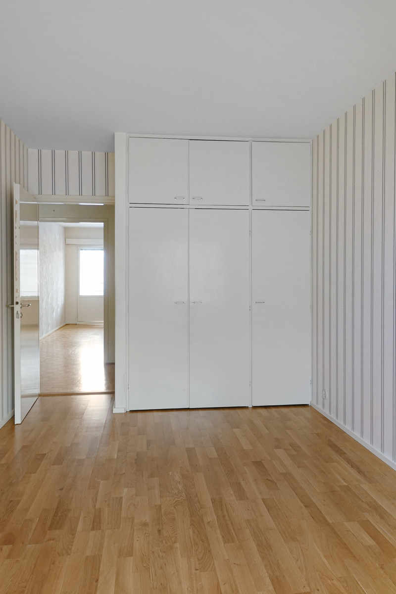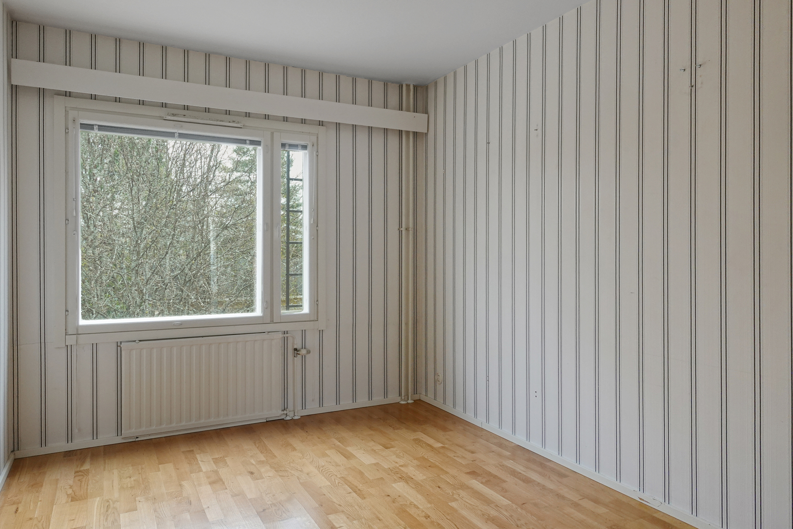 Makuuhuoneiden kuvaus | Makuuhuoneissa parkettilattia, tapetoidut seinät ja maalattu katto. |