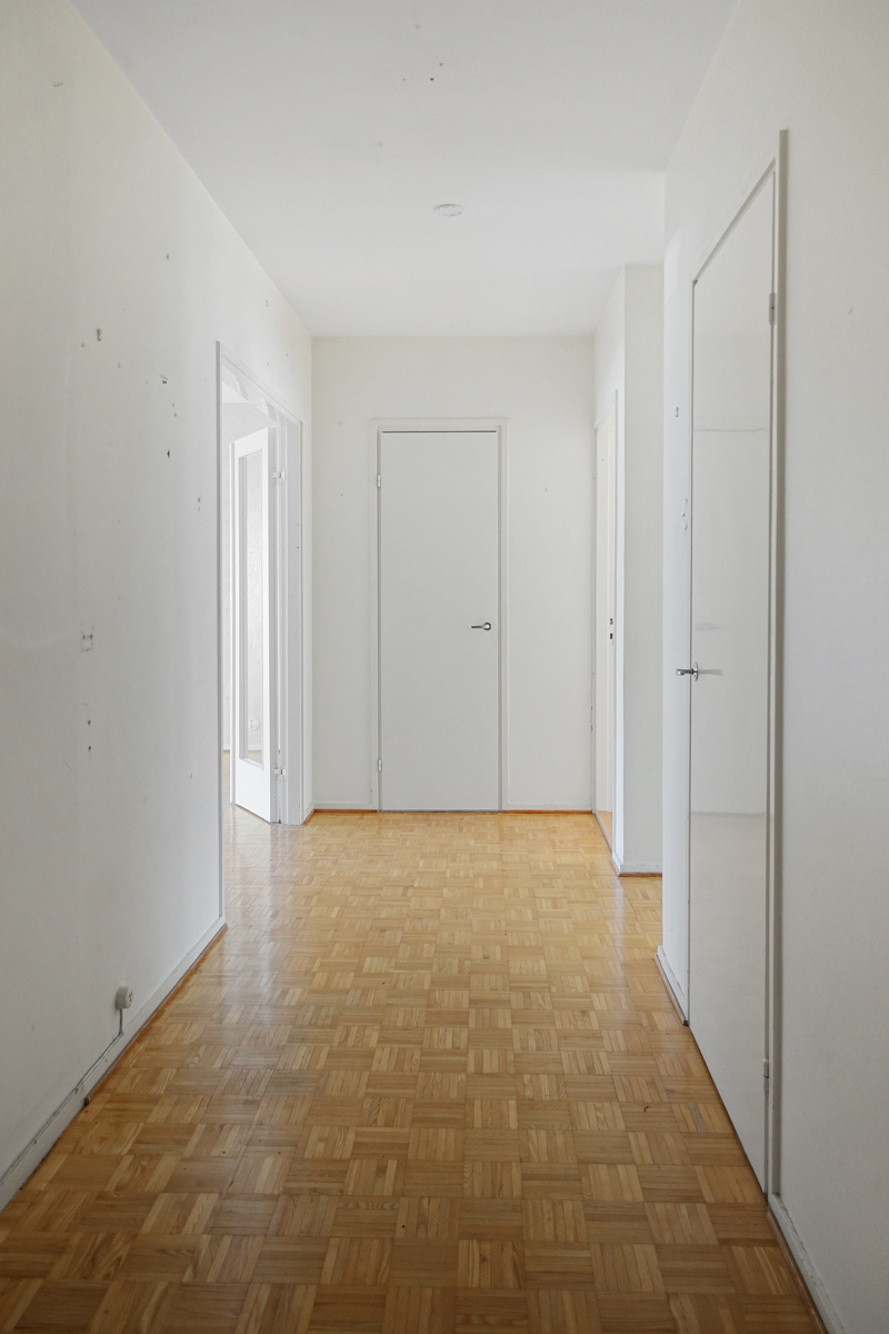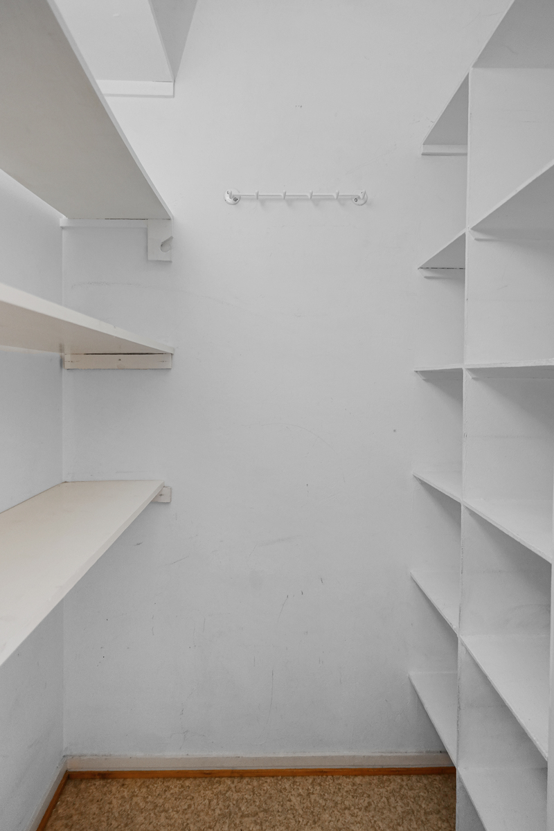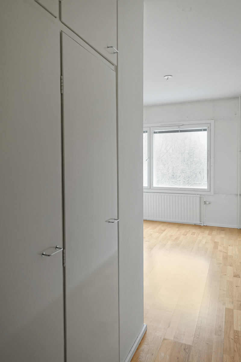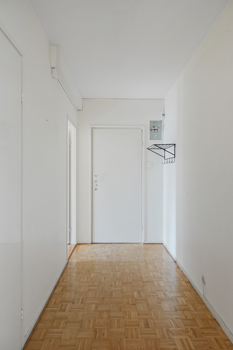 Lisätietoja | Eteisessä parkettilattia, maalatut seinät ja katto. Vaatehuone. |