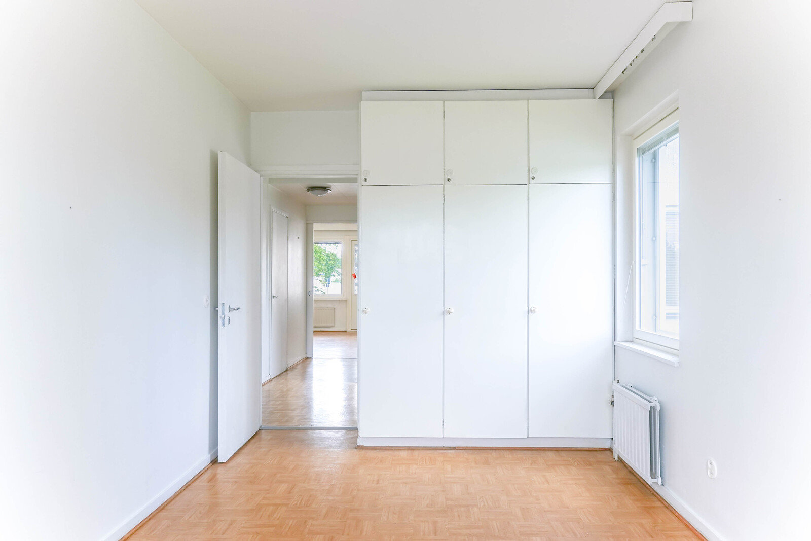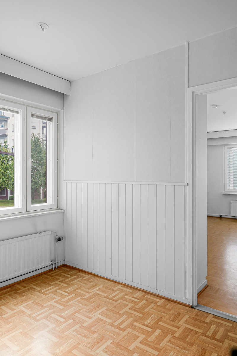 | Makuuhuoneiden kuvaus | 1. makuuhuone: Lattiassa muovimatto, seinät maalattu, komerot 2. makuuhuone: laminaattilattia, seinät tapetoitu, katto maalattu, komerot |