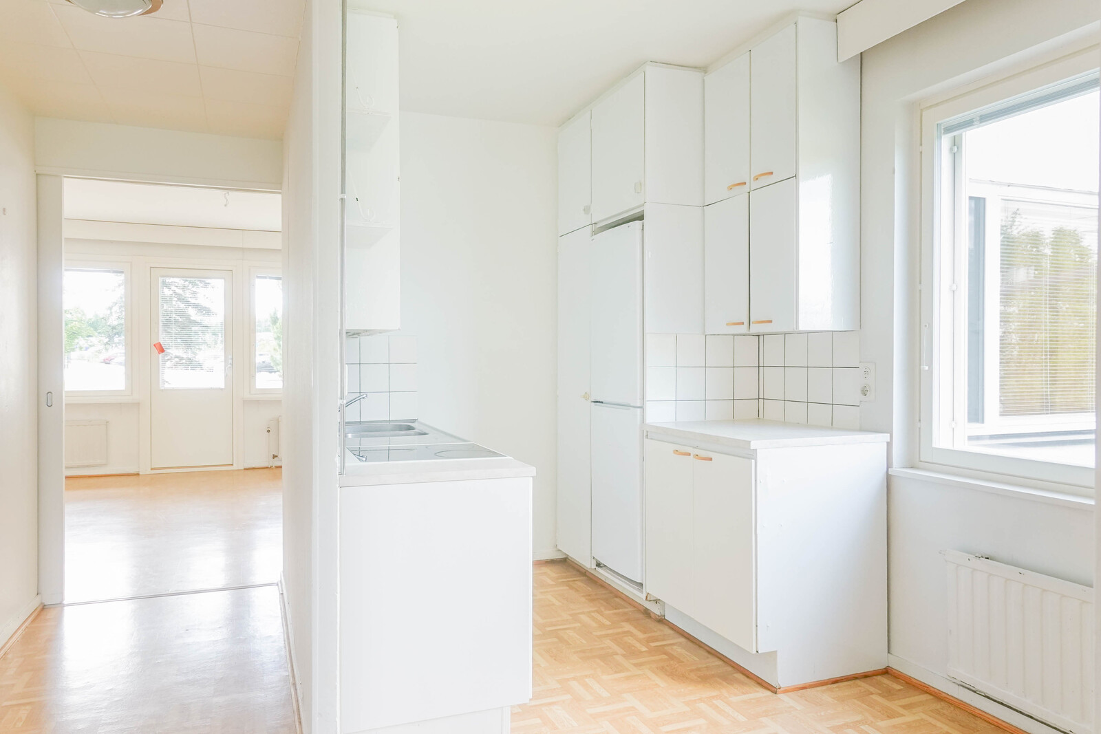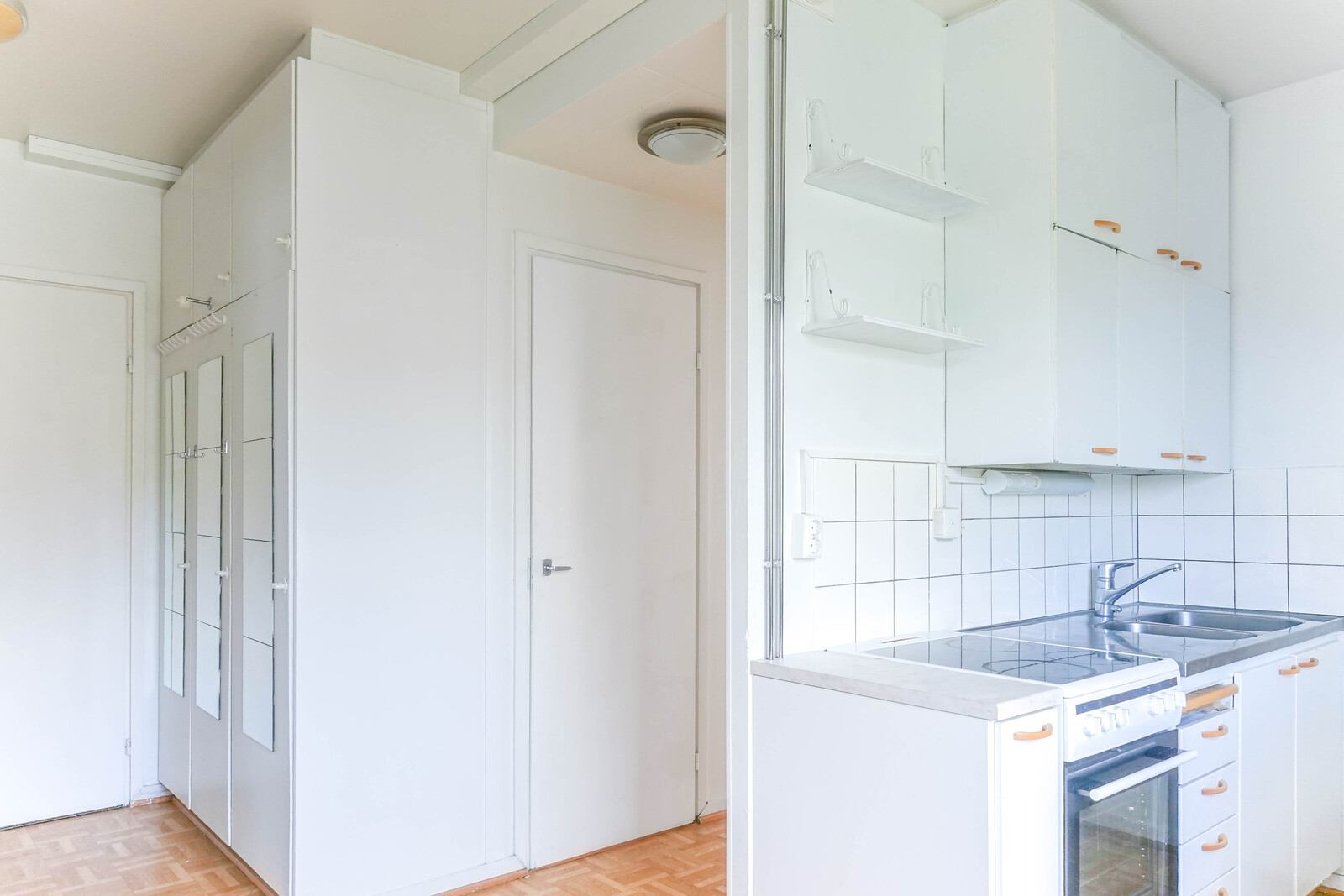 | Keittiön kuvaus | Lattiassa muovimatto, seinät ja katto maalattu, keraaminen liesi, jääkaappi/pakastin, kaapistot |
