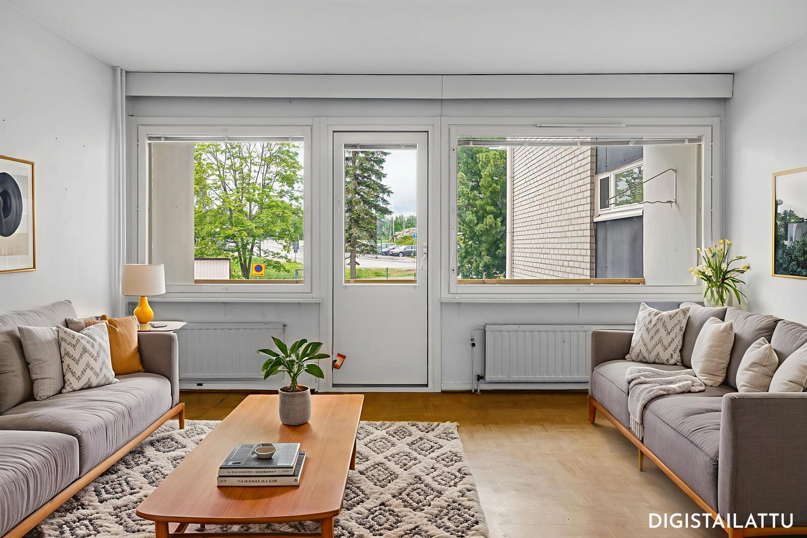 Vapaa kolmio huippupaikalla. Läpitalon huoneisto, parvekkeelta näkymät sisäpihalle ja rautatieaseman suuntaa sekä kauniit näkymät Kajaanijoelle. Valoisa huoneisto hissitalon 1. kerroksessa. Keittokomerossa vaaleat kaapistot, keraaminen liesi ja jääkaappi/pakastin. Kylpyhuone on laatoitettu. Taloyhtiössä on tehty useita korjaustoimenpiteitä, joten tässä asuminen on huoletonta. Ota yhteyttä ja sovi esittelyaika!