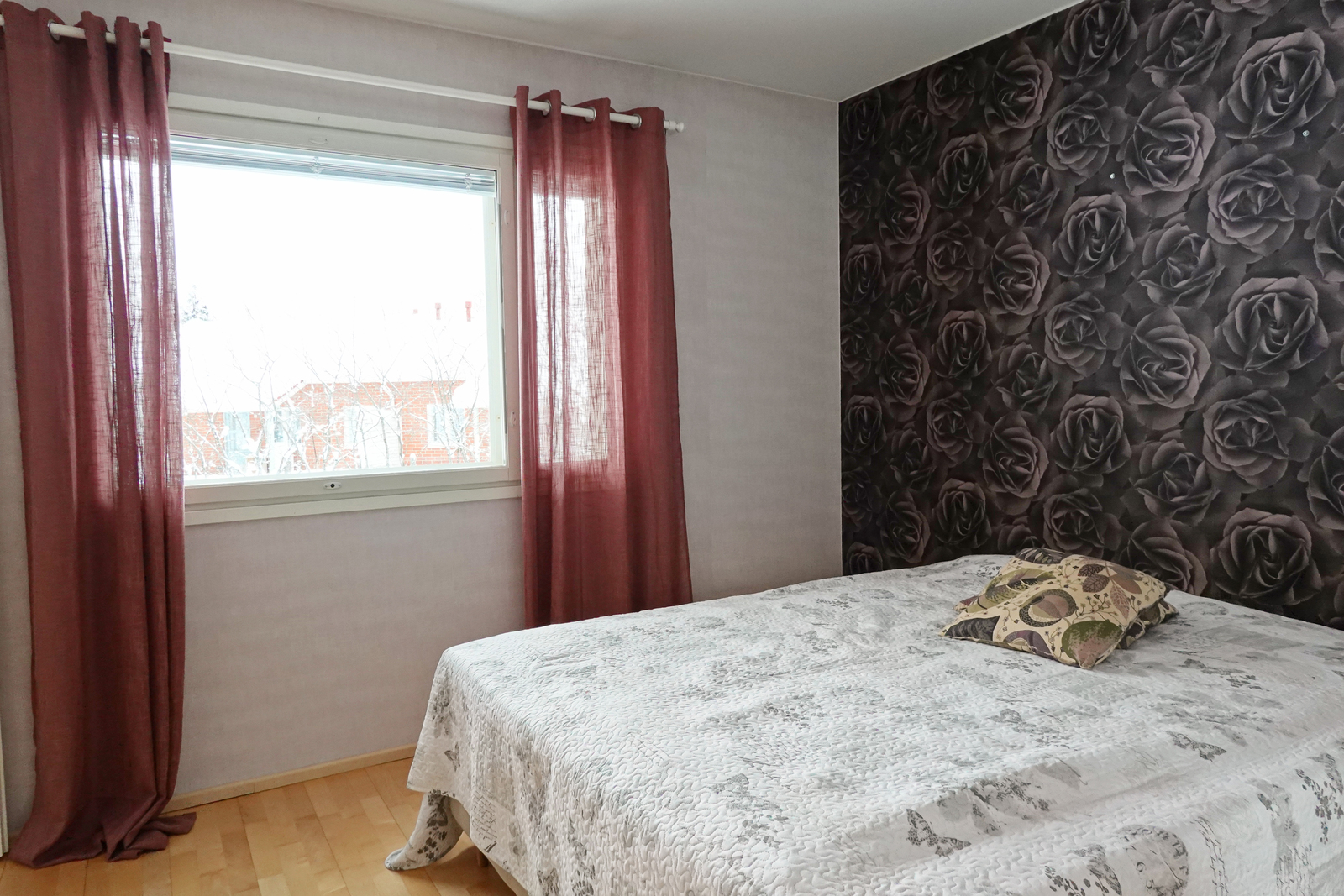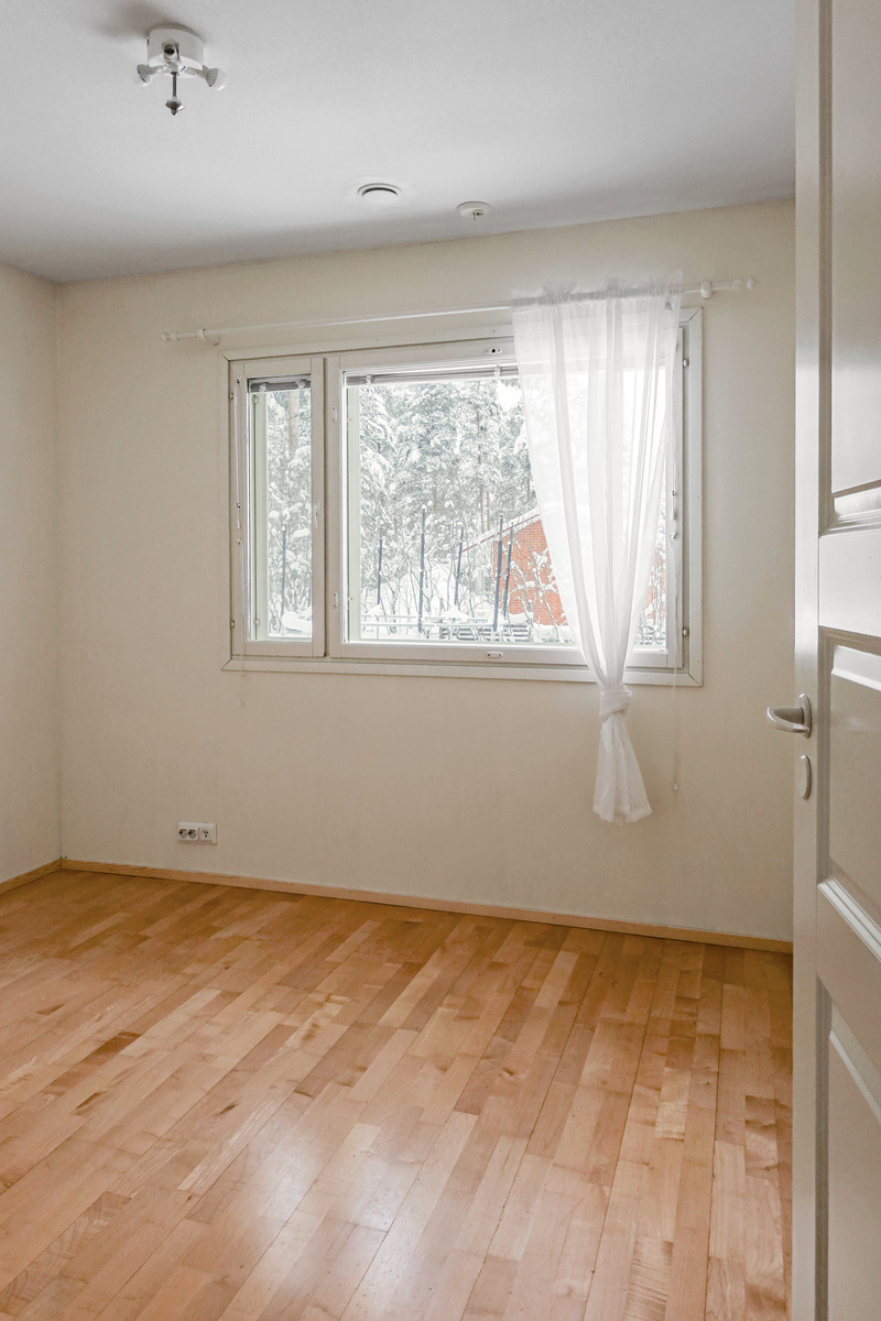 Makuuhuone: Parkettilattia, seinät maalattu, katto maalattu.