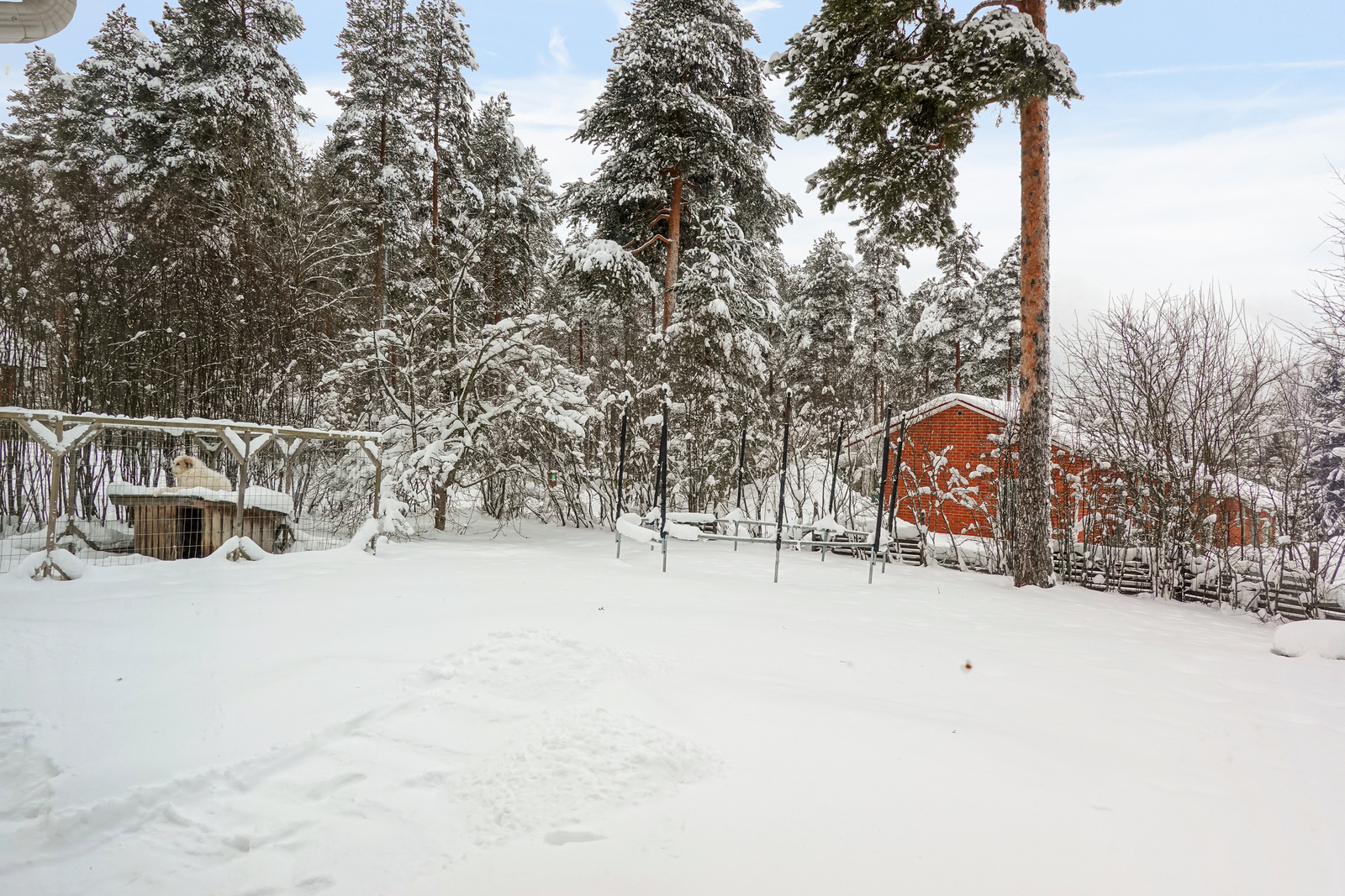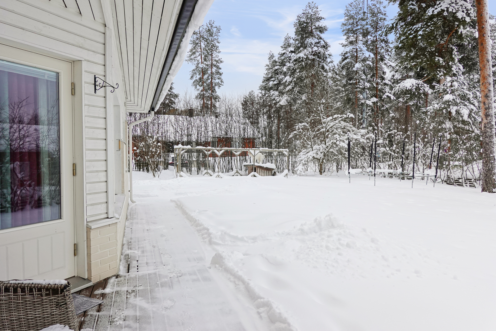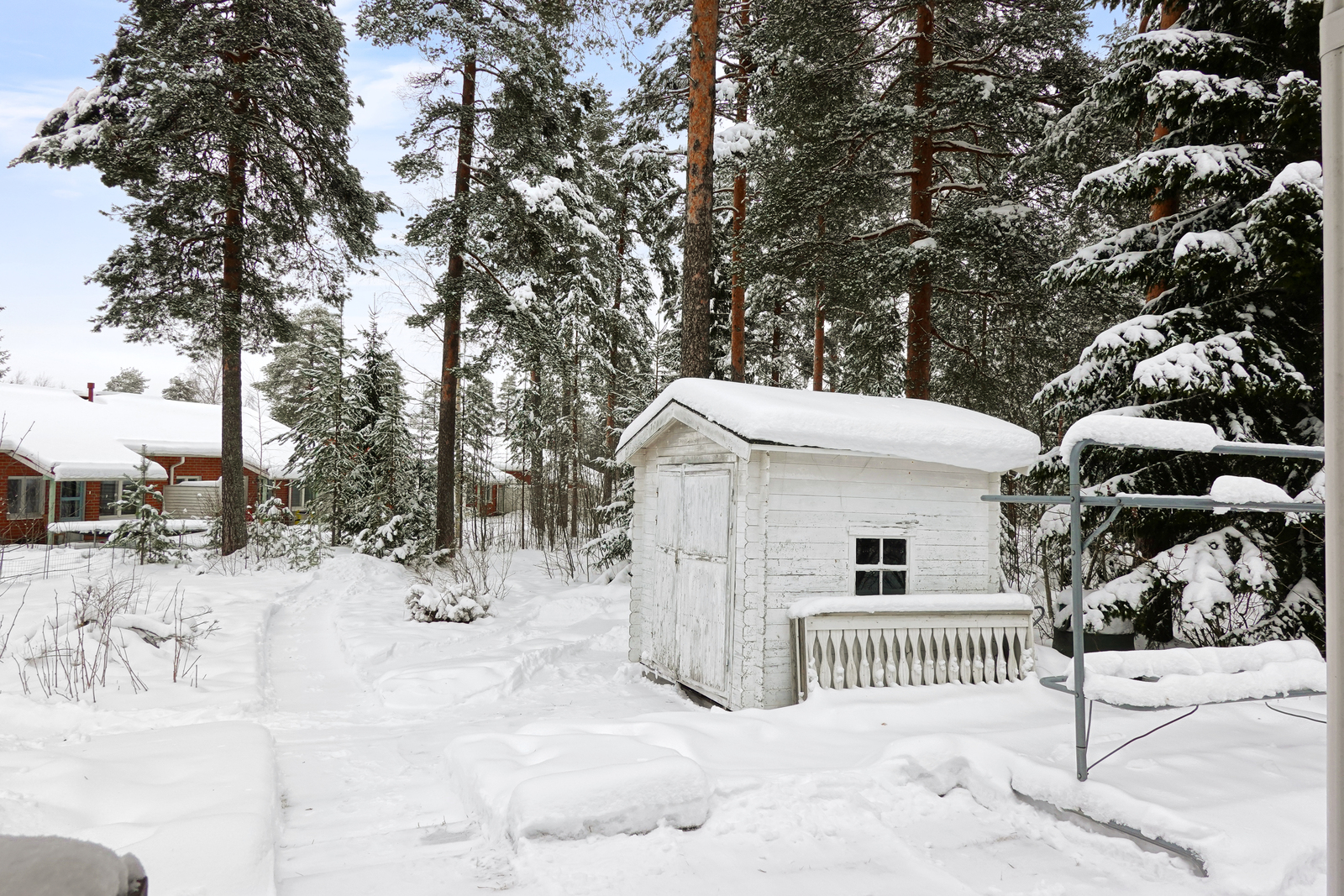 Talossa on autokatospaikka kahdelle autolle. Piha on suojaisa ja sinne mahtuu monia aktiviteetteja. Lisäksi polttopuiden säilytystä varten on oma pihavaja.